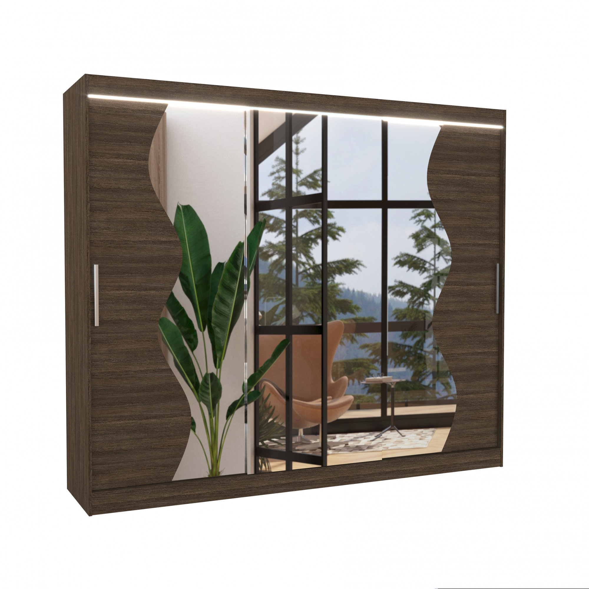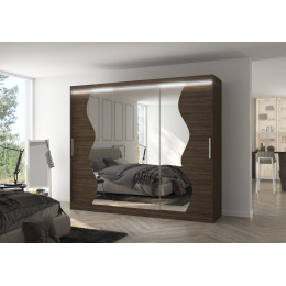 Posuvná skříň se zrcadlem a LED osvětlením SHARON 250 Choco+Choco