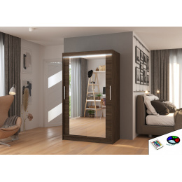 Posuvná skříň se zrcadlem a LED osvětlením TIBAGO 120 Choco+Choco
