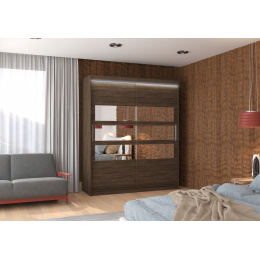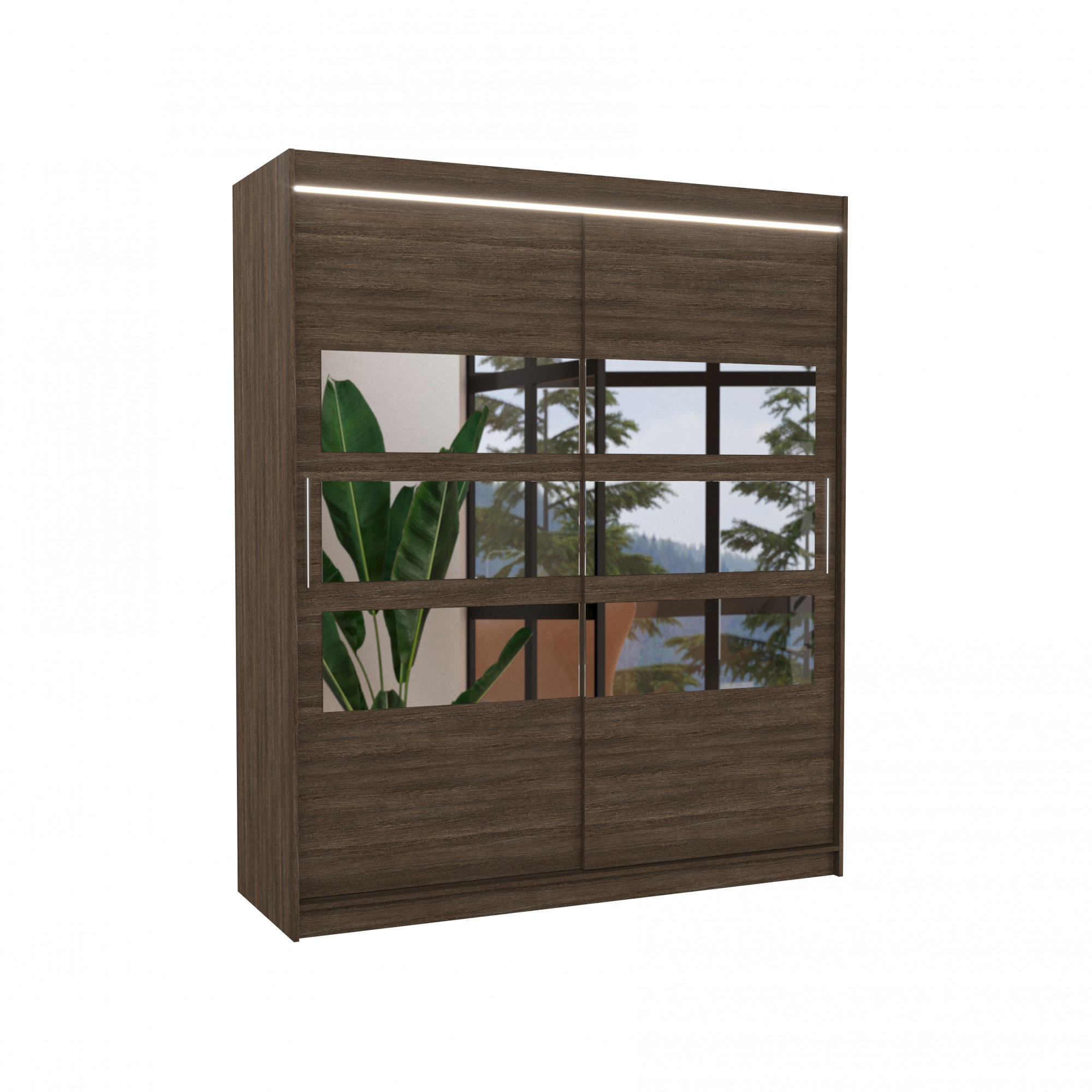 Posuvná skříň se zrcadlem a LED osvětlením TOLEDO 180 Choco+Choco