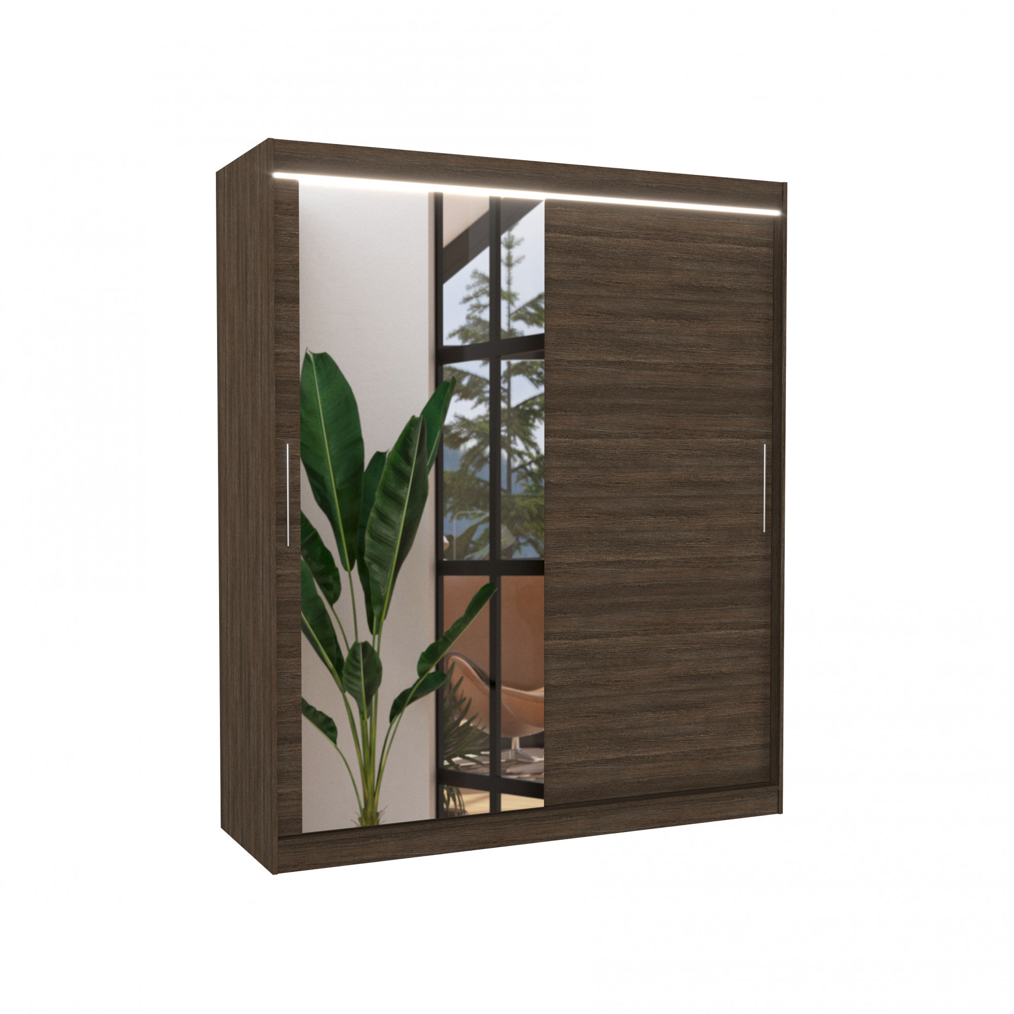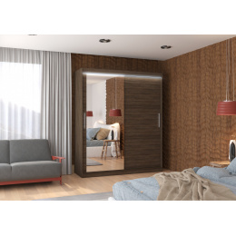 Posuvná skříň se zrcadlem a LED osvětlením TOM 180 Choco+Choco