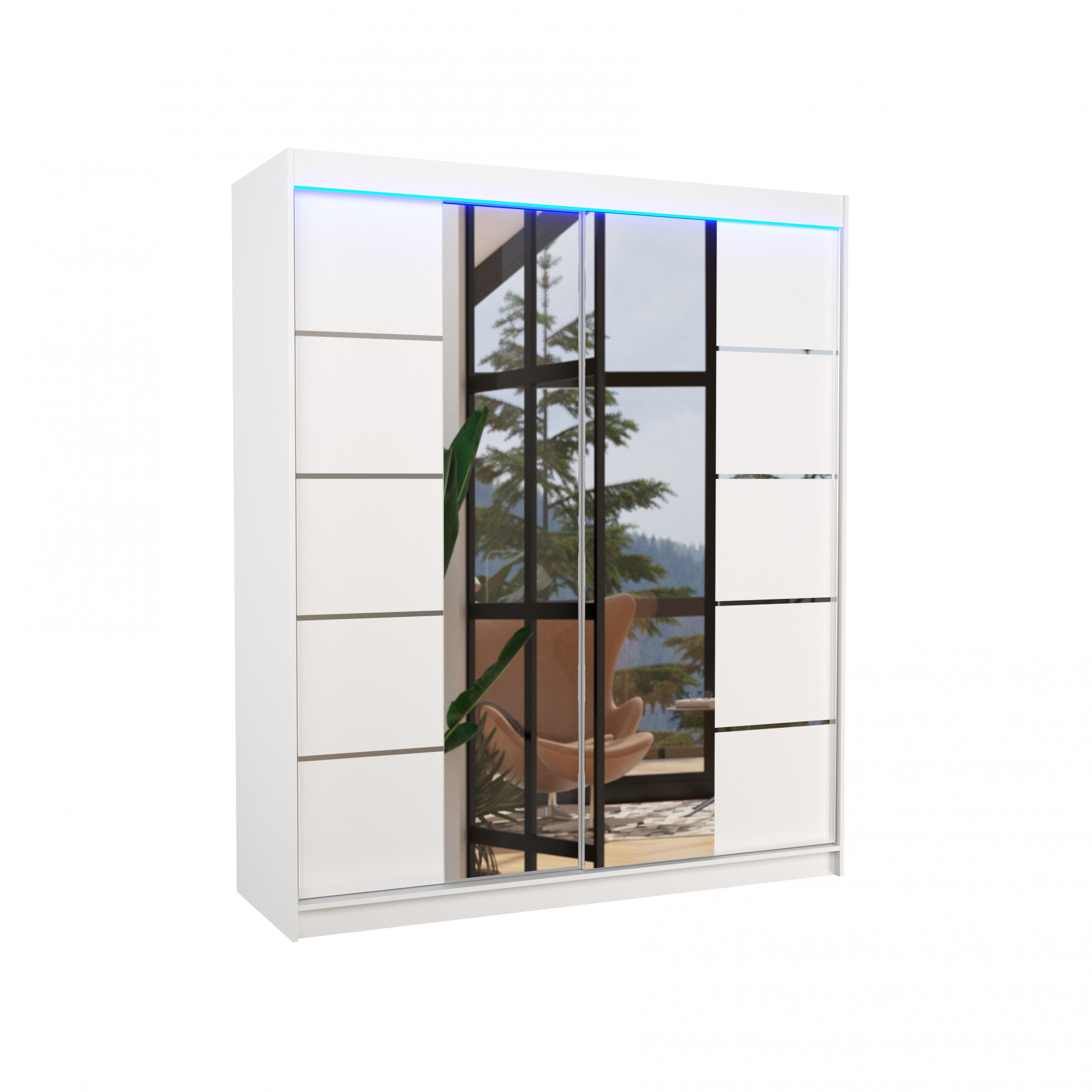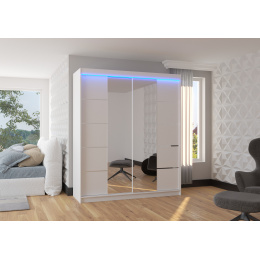 Posuvná skříň se zrcadlem a LED osvětlením TRAVES 180 Bílá+Bílá