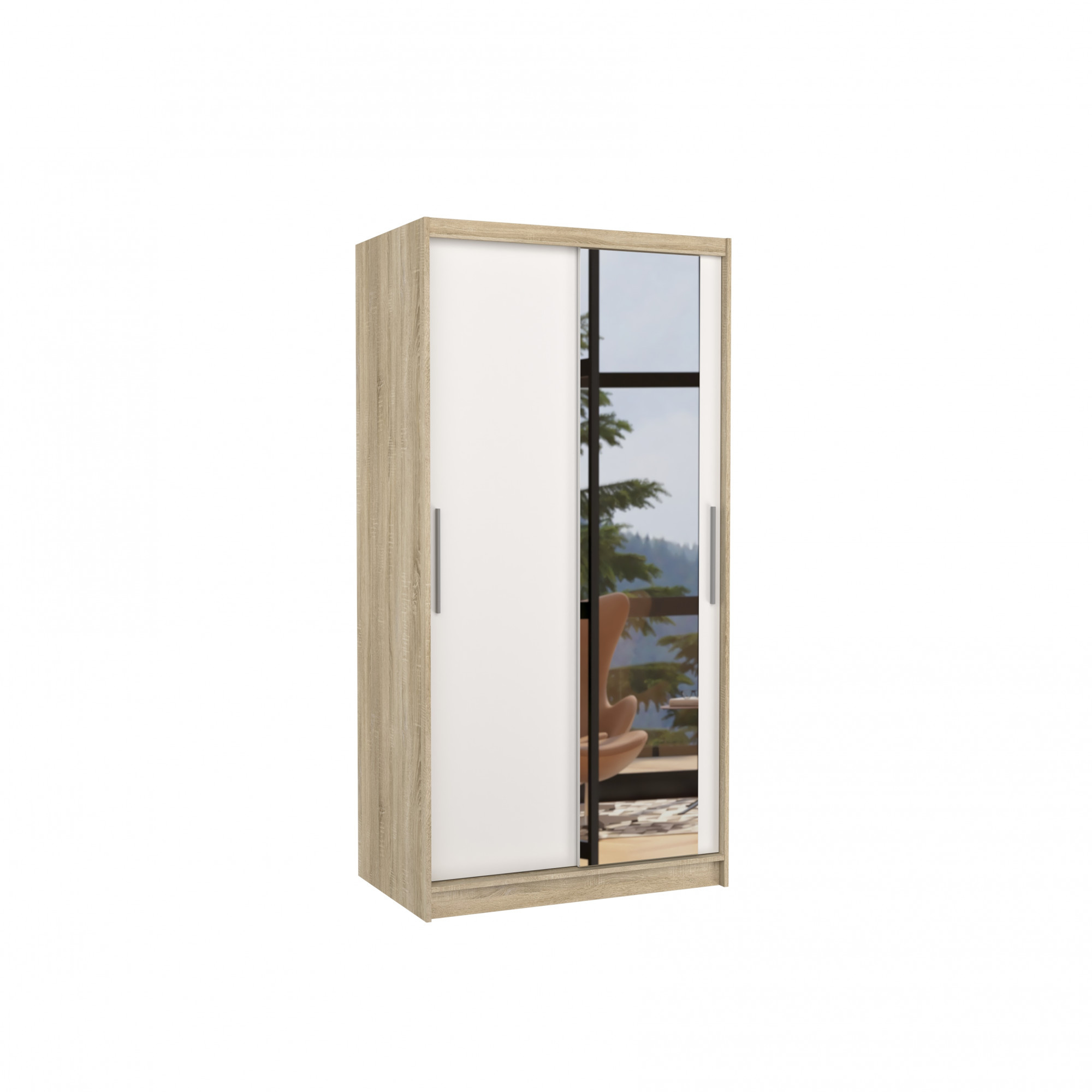 Posuvná skříň se zrcadlem BAROS 100 Sonoma+White