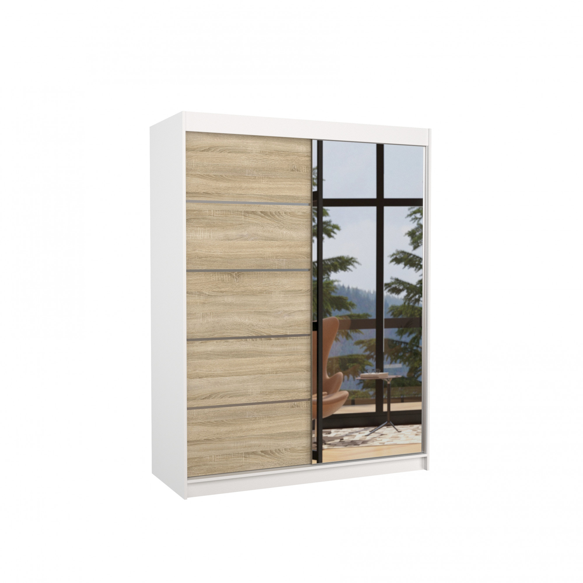 Posuvná skříň se zrcadlem LIMBO 150 Bílá+Sonoma