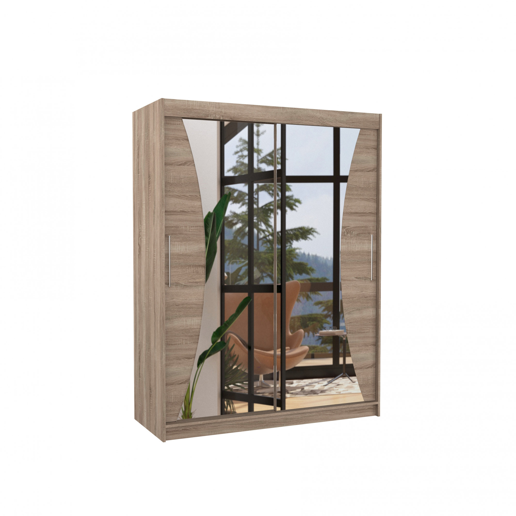 Šatní skříň s posuvnými dveřmi a zrcadlem MAX je ideálním způsobem, jak uspořádat prostor. Nábytek je vybaven prostornými policemi a tyčí, na kterou můžete pověsit šaty, obleky, svrchní oděvy nebo košile. Na čelní straně bylo připevněno zrcadlo, které opticky zvětšuje prostor. Díky tomu, že skříň je posuvná, nemusíte vyčleňovat další místo na otevření dveří, což z ní činí ideální řešení pro malý pokoj nebo úzkou předsíň.