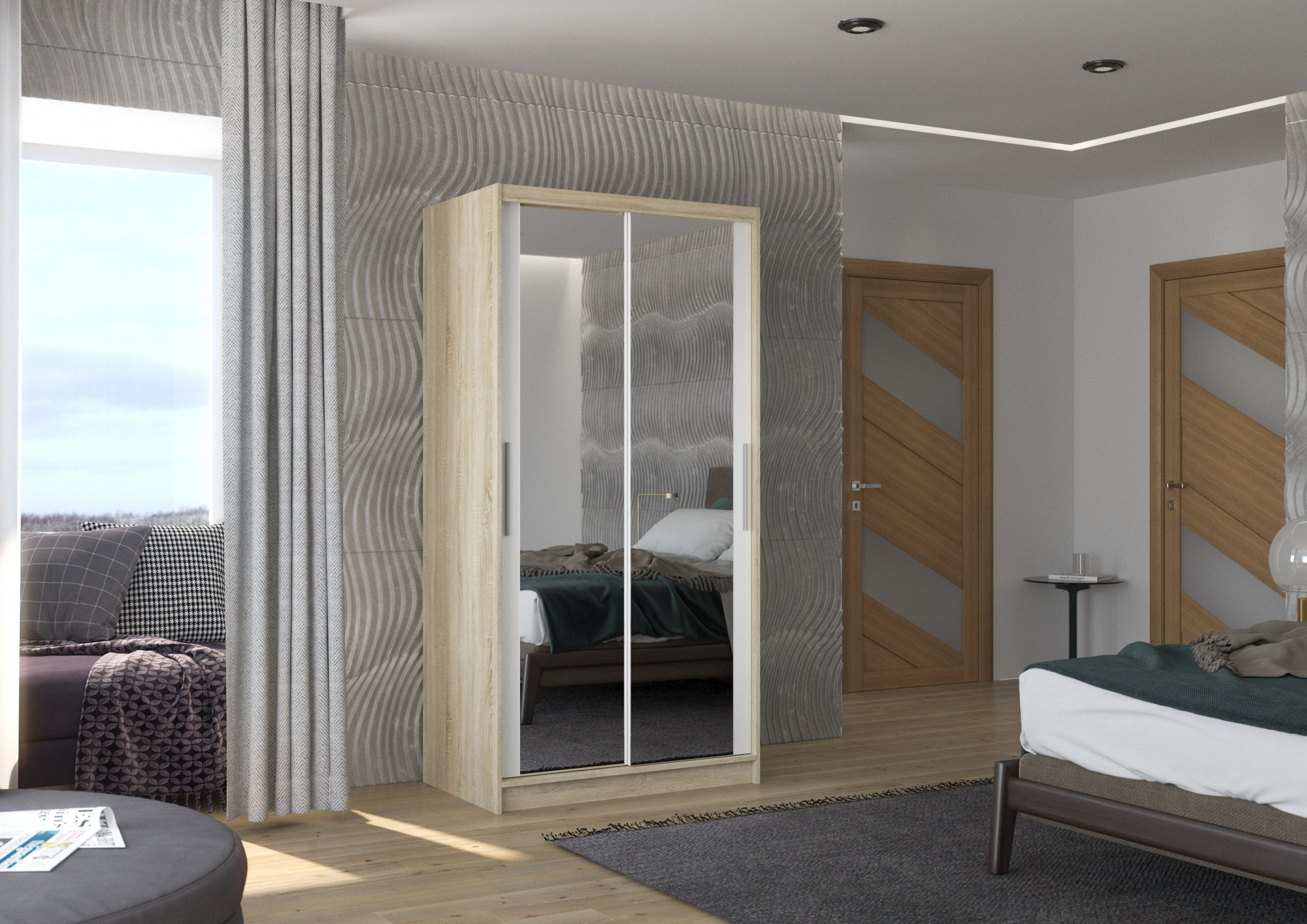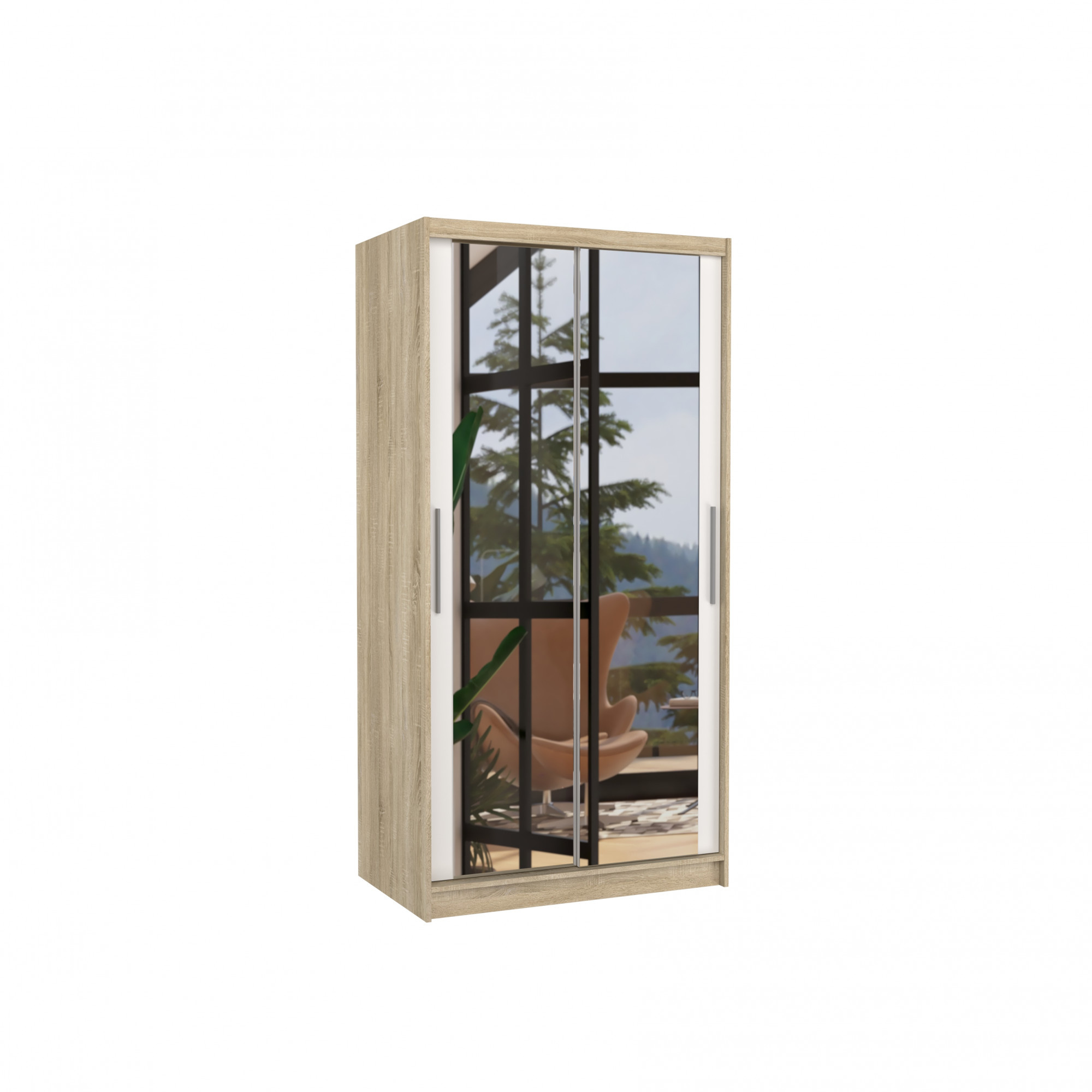 Posuvná skříň se zrcadlem NEVIO 100 Sonoma+White