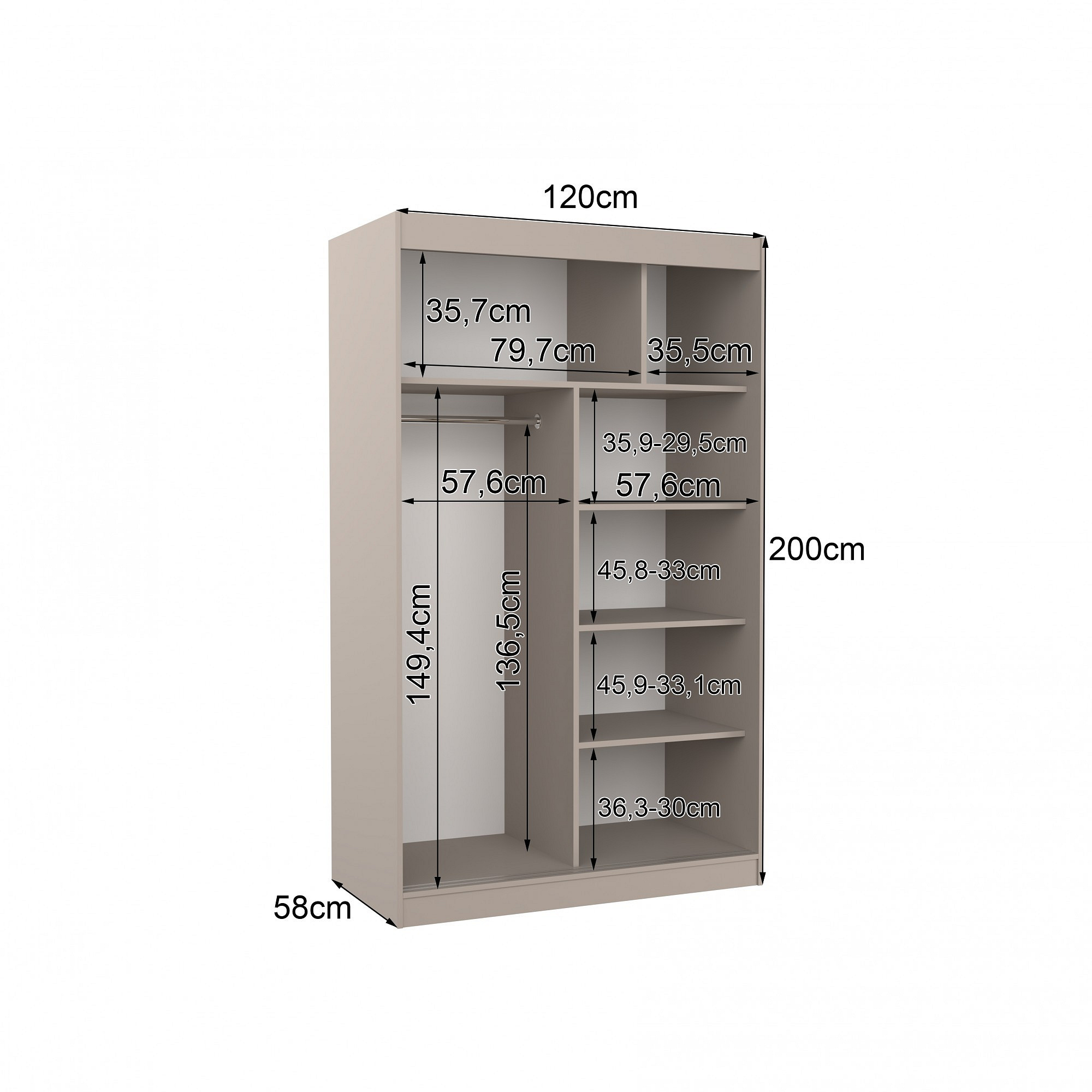 Posuvná skříň se zrcadlem NICEA 120 Kašmír+Kašmír