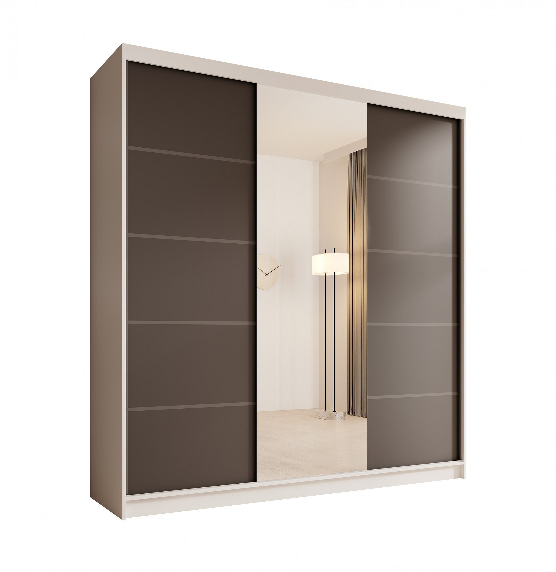 Skříň Sonic se zrcadlem 200 je moderní a funkční nábytek ideální do ložnice, šatny nebo předsíně. Má posuvné dveře, které usnadňují každodenní používání a umožňují ušetřit místo v místnosti. Centrálně umístěné velké zrcadlo nejen opticky zvětšuje prostor, ale také plní praktickou funkci, usnadňuje každodenní přípravy na odchod. Skříň Sonic spojuje estetiku s praktičností, nabízí prostorný interiér s policemi a tyčí na oblečení, což z ní činí vynikající volbu pro moderní interiéry.