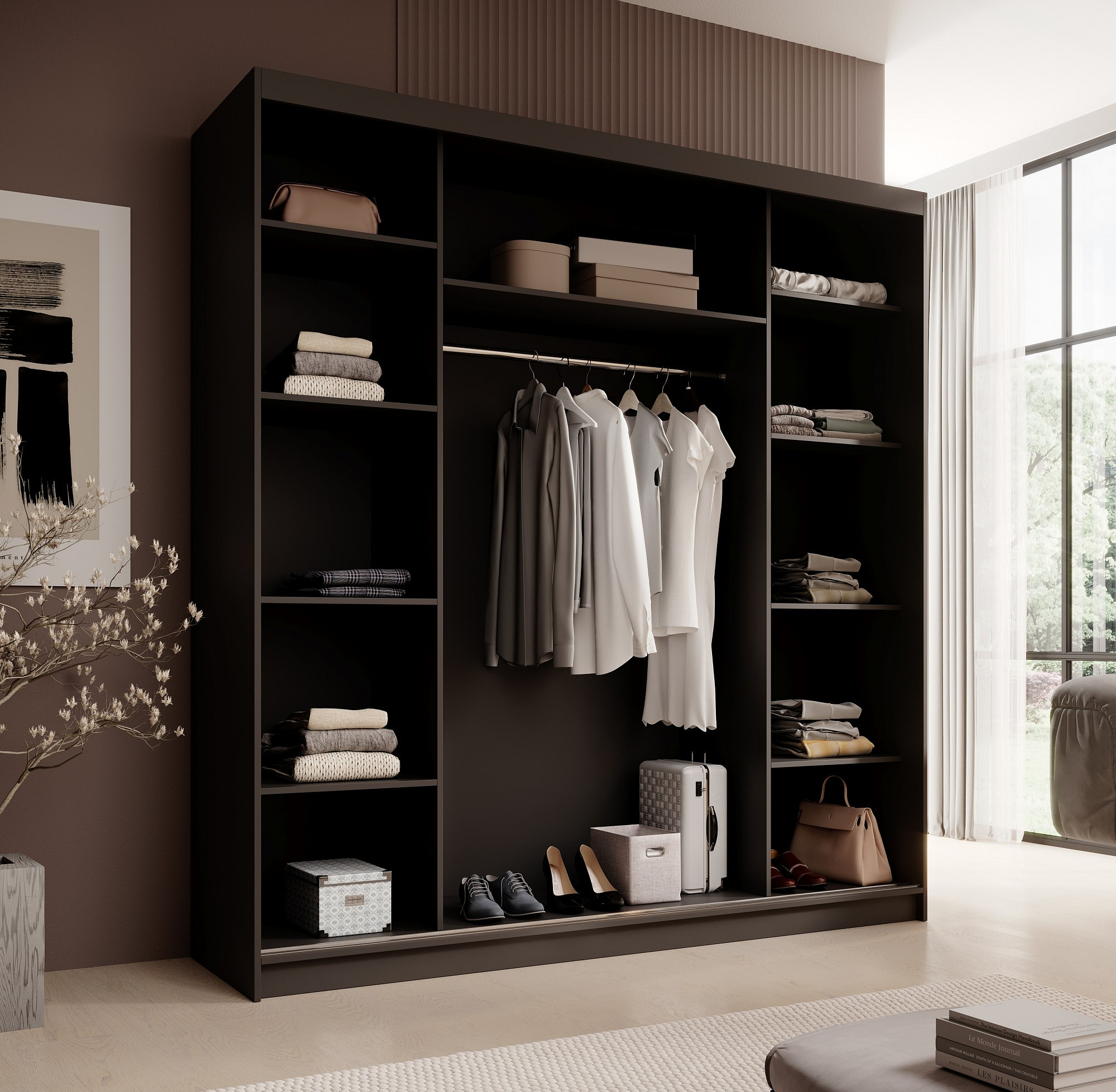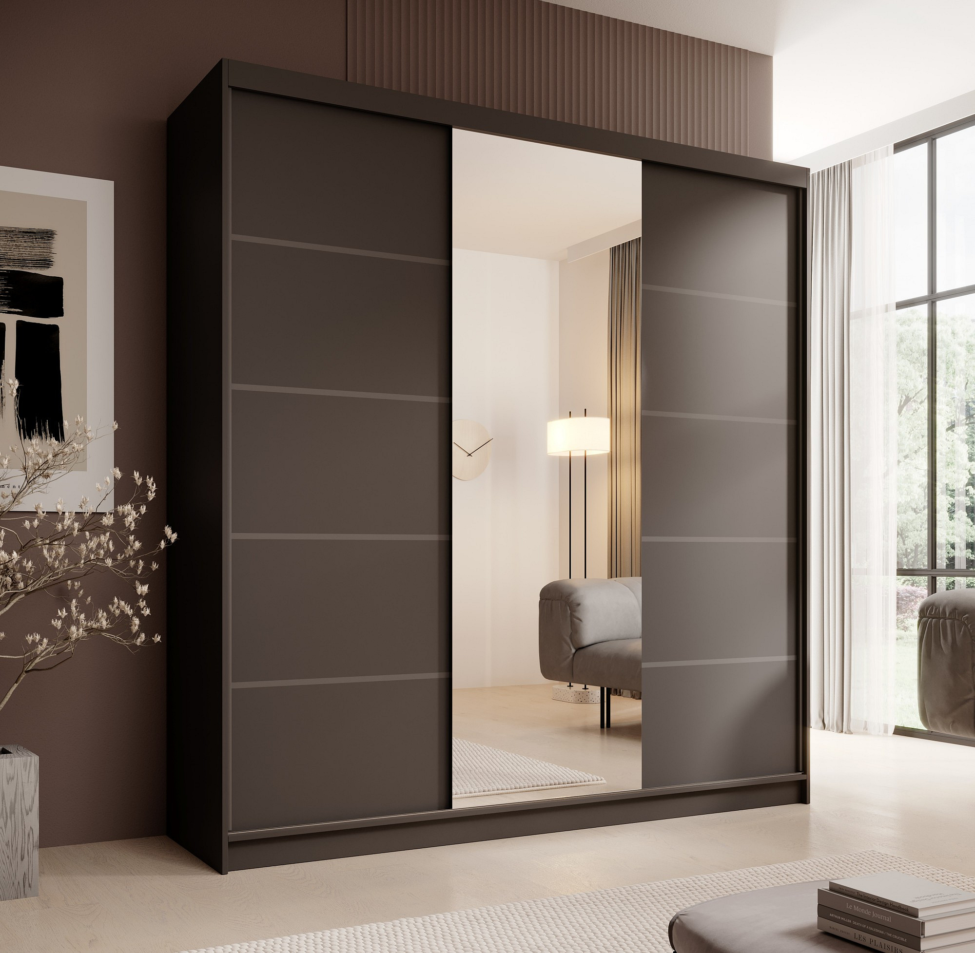 Skříň Sonic se zrcadlem 200 je moderní a funkční nábytek ideální do ložnice, šatny nebo předsíně. Má posuvné dveře, které usnadňují každodenní používání a umožňují ušetřit místo v místnosti. Centrálně umístěné velké zrcadlo nejen opticky zvětšuje prostor, ale také plní praktickou funkci, usnadňuje každodenní přípravy na odchod. Skříň Sonic spojuje estetiku s praktičností, nabízí prostorný interiér s policemi a tyčí na oblečení, což z ní činí vynikající volbu pro moderní interiéry.