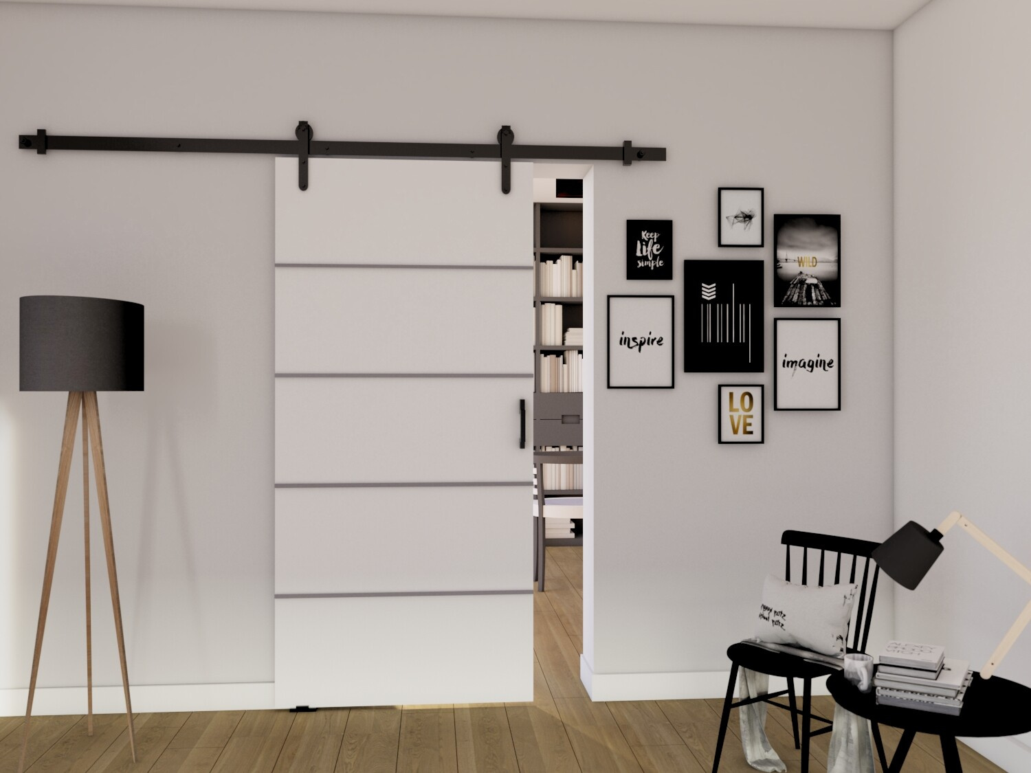 Posuvné dveře LOFT B100, Bílá/Černá
