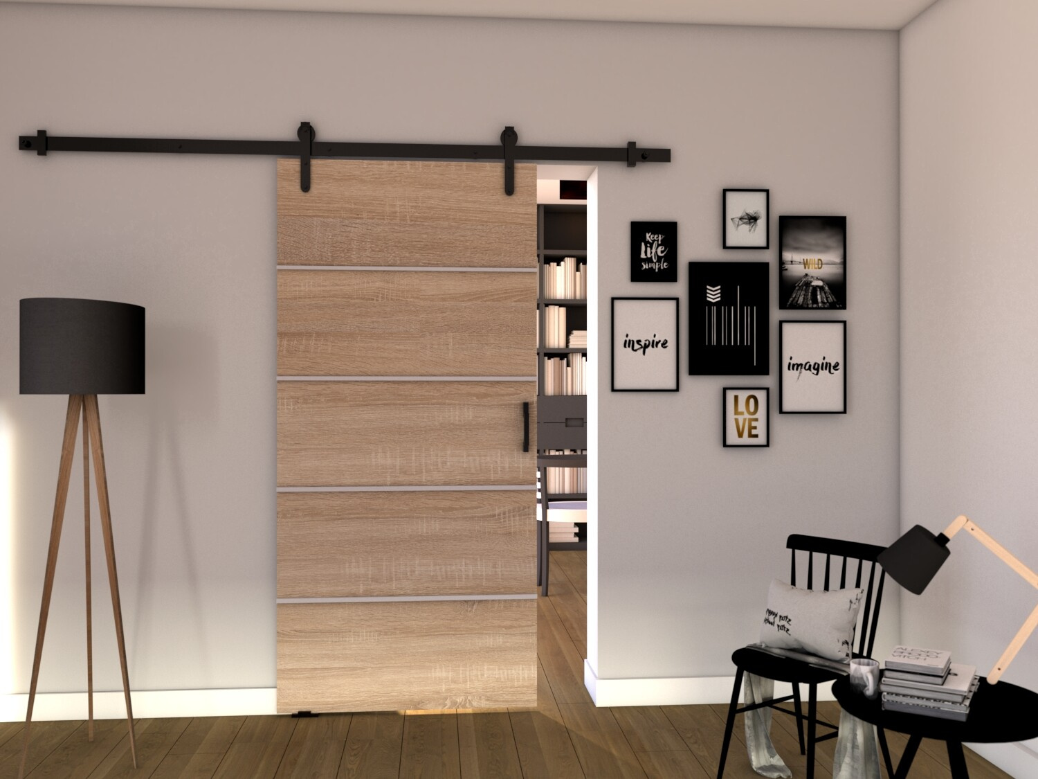 Posuvné dveře LOFT B100, Sonoma/Černá