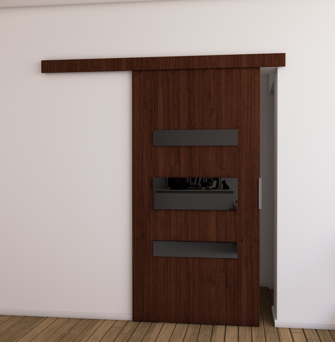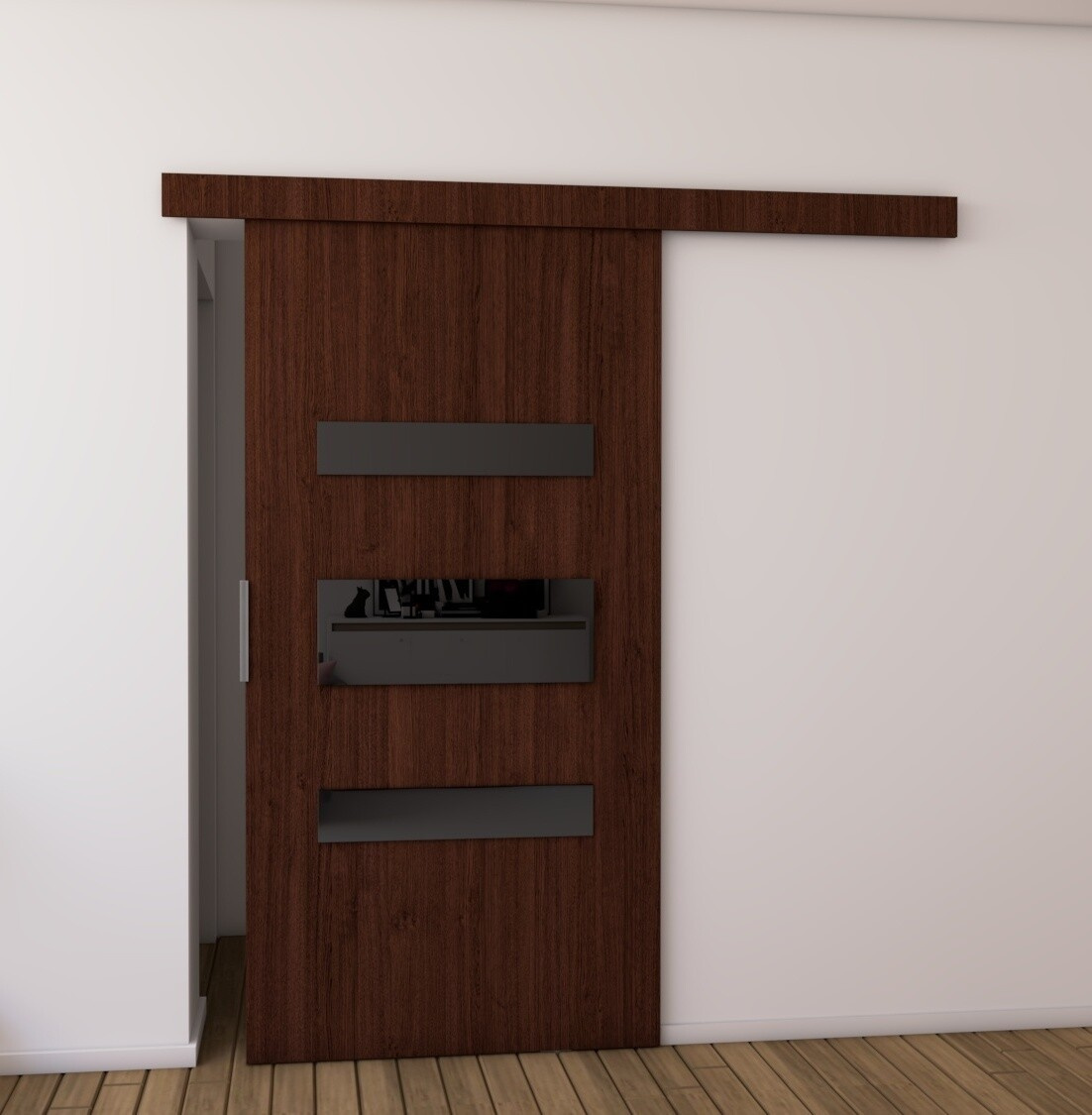 - Možnost dokoupení samozavíracího zařízení pro posuvné dveře, které zabrzdí dveře a jemně je dovře do krajní polohy a zabraňuje poškození dveří při silném posunu