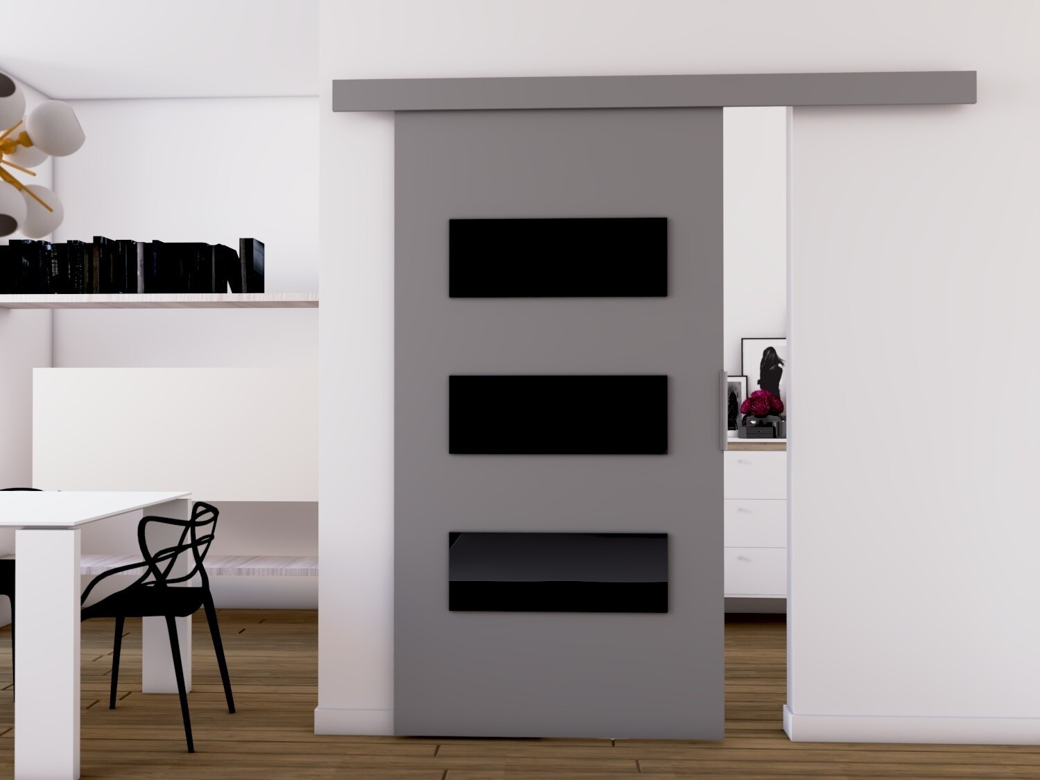 - Možnost dokoupení samozavíracího zařízení pro posuvné dveře, které zabrzdí dveře a jemně je dovře do krajní polohy a zabraňuje poškození dveří při silném posunu