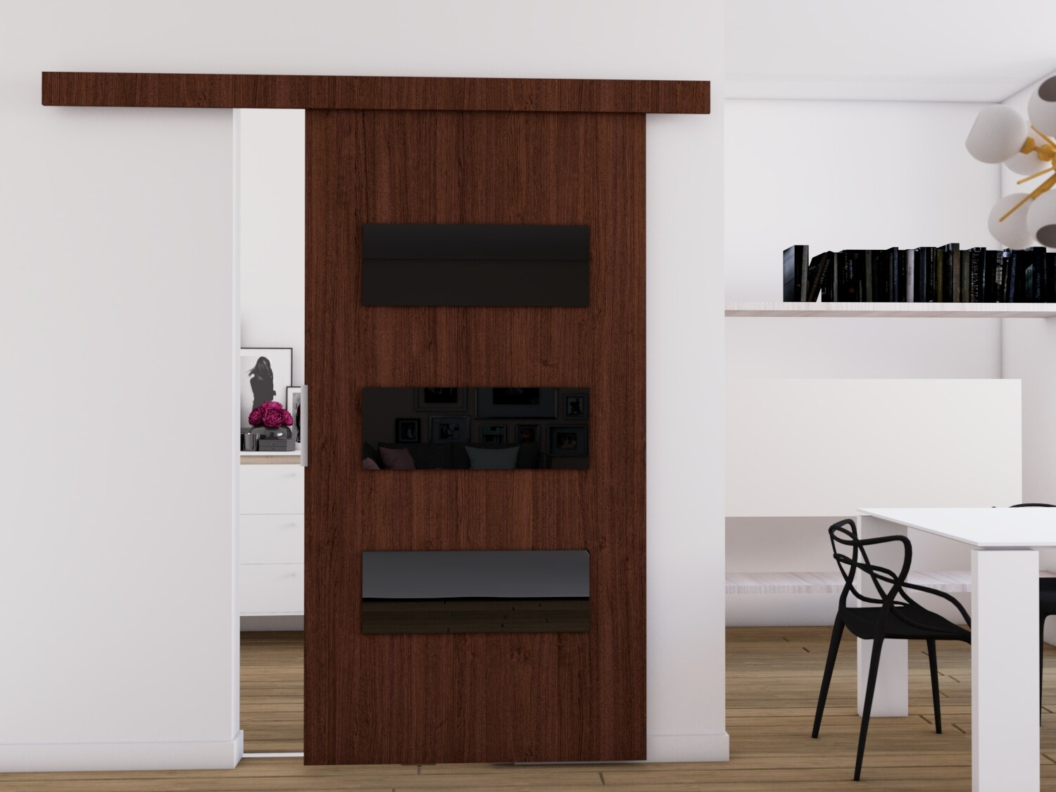 - Možnost dokoupení samozavíracího zařízení pro posuvné dveře, které zabrzdí dveře a jemně je dovře do krajní polohy a zabraňuje poškození dveří při silném posunu