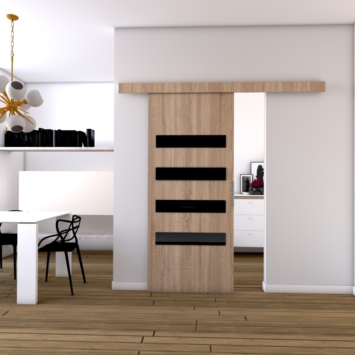 - Dekorativní prvky jsou umístěny z jedné strany dveří