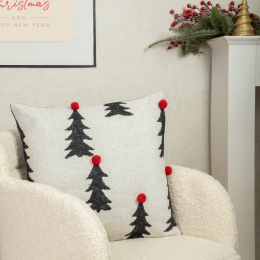 Povlak na polštář BELLY s vánočními stromy a bambulkami šedý 45x45 cm XM22 828077
