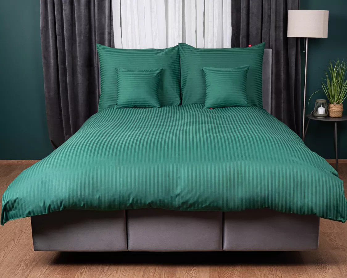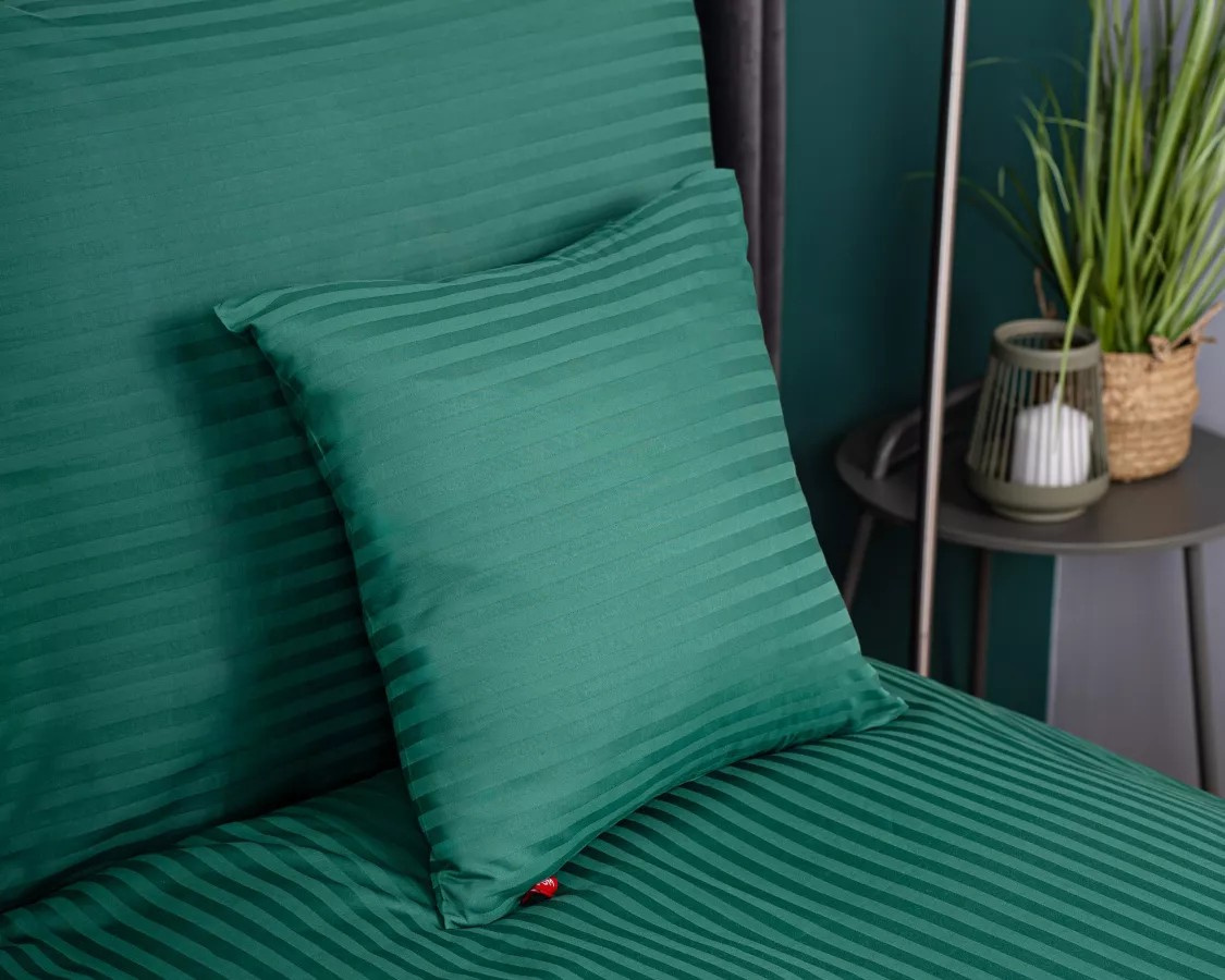 Komplet povlečení 100% bavlna tmavě zelená Komfortní, klidný spánek je základem zdraví a dobré nálady každý den. Jedním z nejdůležitějších faktorů ovlivňujících kvalitu odpočinku je vhodné ložní prádlo. Při hledání ideálního řešení stojí za to zvolit povlečení vyrobené ze 100% přírodní bavlny, které výrazně zlepší kvalitu spánku a odpočinku. Sada bavlněného povlečení v tmavě zelené barvě Přírodní bavlna patří mezi nejoblíbenější materiály, po které saháme při zařizování ložnice. Tento materiál je ceněn z několika důvodů: je trvanlivý, příjemný na dotek, dostupný za konkurenceschopnou cenu. Bavlněné povlečení si dlouho zachovává estetický vzhled, zůstává odolné vůči blednutí a efektivně zkrášluje každou ložnici. Především však bavlna zajišťuje pohodlný spánek, stará se o komfort, teplo a správnou cirkulaci vzduchu. Sada povlečení obsahuje: Povlak na přikrývku: 160x200 cm nebo 200x220 cm 2 povlaky na polštáře: 70x80 cm 2 povlaky na polštáře: 40x40 cm Sada zeleného povlečení ze 100% bavlny Jednou z největších předností bavlněného povlečení je jeho vynikající termoregulace. Bavlna skvěle propouští vzduch, což zajišťuje odpovídající ventilaci pokožky během teplých letních nocí. To však není vše – v chladnějších podzimních a zimních večerech bavlněné povlečení příjemně obklopuje tělo, poskytuje pocit pohodlí bez pocitu přehřátí. Díky tomu, bez ohledu na roční období, bavlna poskytuje optimální podmínky pro odpočinek a klidný spánek. Specifikace sady povlečení: Typ: sada bavlněného povlečení Druh tkaniny: 100% bavlna prát při teplotě do 40 stupňů nečistit chemicky nebělit