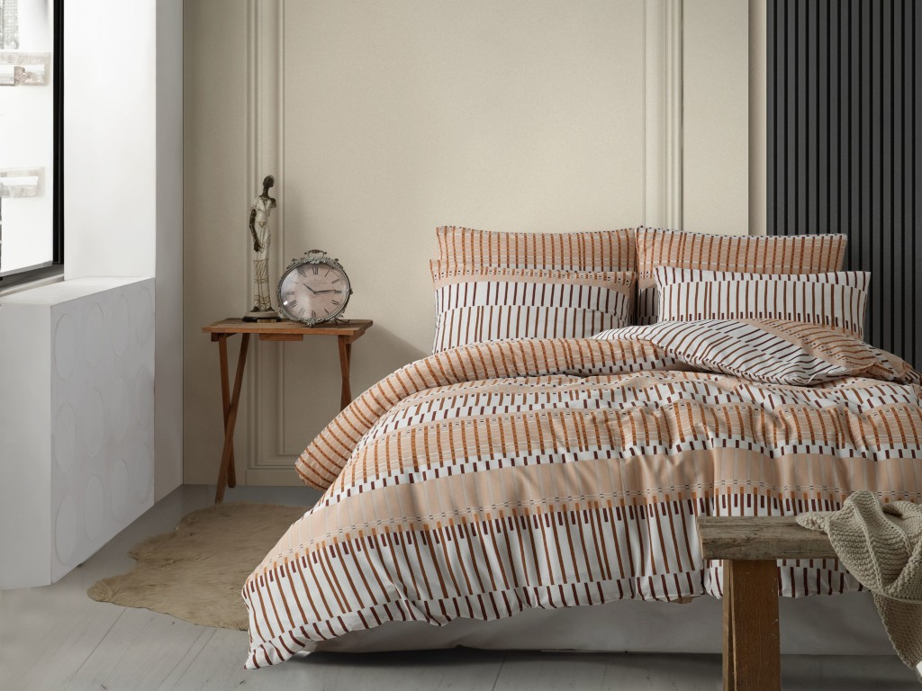 Povlečení bavlna 140x200, 70x90cm Miranda hnědá nitěný knoflík