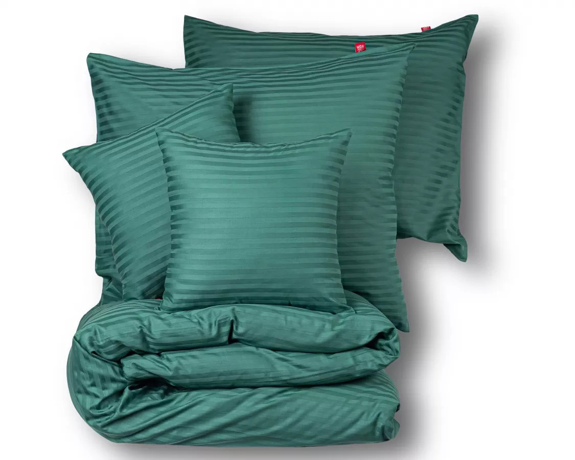 Komplet povlečení 100% bavlna tmavě zelená Komfortní, klidný spánek je základem zdraví a dobré nálady každý den. Jedním z nejdůležitějších faktorů ovlivňujících kvalitu odpočinku je vhodné ložní prádlo. Při hledání ideálního řešení stojí za to zvolit povlečení vyrobené ze 100% přírodní bavlny, které výrazně zlepší kvalitu spánku a odpočinku. Sada bavlněného povlečení v tmavě zelené barvě Přírodní bavlna patří mezi nejoblíbenější materiály, po které saháme při zařizování ložnice. Tento materiál je ceněn z několika důvodů: je trvanlivý, příjemný na dotek, dostupný za konkurenceschopnou cenu. Bavlněné povlečení si dlouho zachovává estetický vzhled, zůstává odolné vůči blednutí a efektivně zkrášluje každou ložnici. Především však bavlna zajišťuje pohodlný spánek, stará se o komfort, teplo a správnou cirkulaci vzduchu. Sada povlečení obsahuje: Povlak na přikrývku: 160x200 cm nebo 200x220 cm 2 povlaky na polštáře: 70x80 cm 2 povlaky na polštáře: 40x40 cm Sada zeleného povlečení ze 100% bavlny Jednou z největších předností bavlněného povlečení je jeho vynikající termoregulace. Bavlna skvěle propouští vzduch, což zajišťuje odpovídající ventilaci pokožky během teplých letních nocí. To však není vše – v chladnějších podzimních a zimních večerech bavlněné povlečení příjemně obklopuje tělo, poskytuje pocit pohodlí bez pocitu přehřátí. Díky tomu, bez ohledu na roční období, bavlna poskytuje optimální podmínky pro odpočinek a klidný spánek. Specifikace sady povlečení: Typ: sada bavlněného povlečení Druh tkaniny: 100% bavlna prát při teplotě do 40 stupňů nečistit chemicky nebělit
