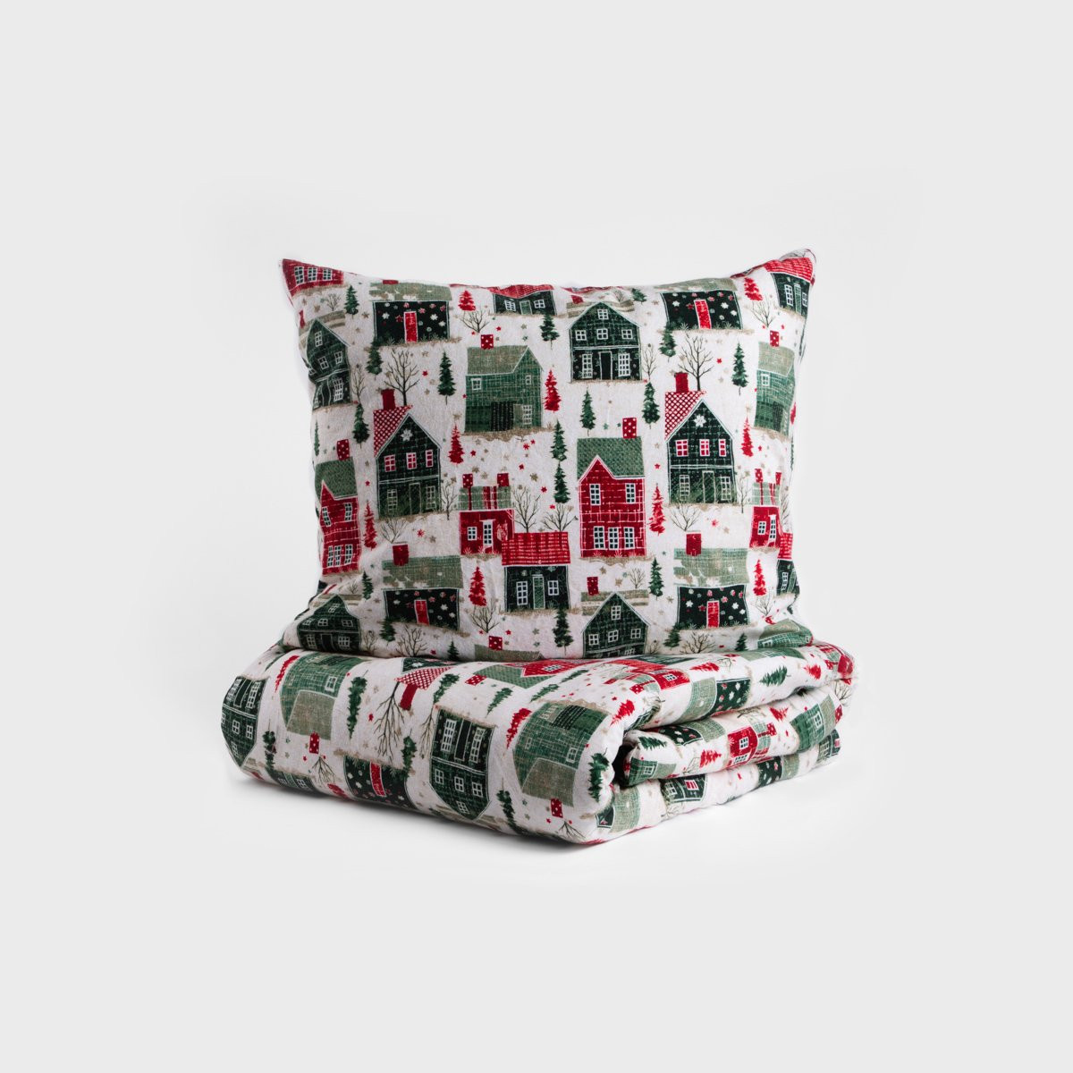 Vytvořte ve své ložnici speciální sváteční atmosféru s flanelovým povlečením GLORA v krásném vzoru chaloupek. Tato sada povlaků na polštáře byla navržena s ohledem na Vánoce, takže bude dokonalým doplňkem vaší sváteční výzdoby. Přidá neobvyklou atmosféru do jakéhokoli prostoru a zajistí pohodlný noční spánek.