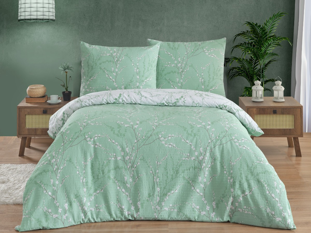 Povlečení je vyrobeno z velmi jemné 100% bavlněné tkaniny o plošné hmotnosti tkaniny 130g/m2. Krepování je vytvořeno pomocí speciální úpravy. Díky tomuto krepování se povlečení nemusí žehlit. Tkanina má vysokou hustotu velmi jemných přízí a pro tyto své vlastnosti je velice jemná a příjemná na omak. Ložní povlečení je vyrobeno s rozměrovou rezervou pro vysrážení po vyprání. Povlečení je vyrobeno v ČR. Běžně je povlečení vyráběno s oblíbeným zipovým uzávěrem, ale na přání možnost ušití s nitěným knoflíkem nebo hotelovým uzávěrem. Pokud budete mít požadavek jiného než zipového zapínání, prosím vyberte při objednávce, o případné skladové nedostupnosti jiného než standartního zapínání budete informováni.