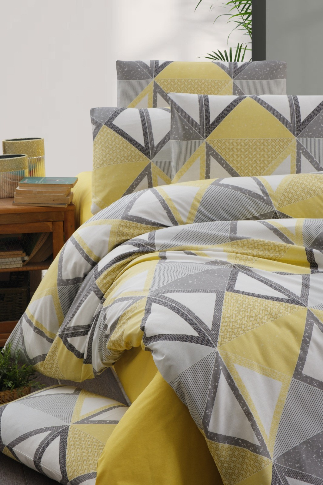Povlečení krep 140x200, 70x90cm Mystery yellow zipový uzávěr