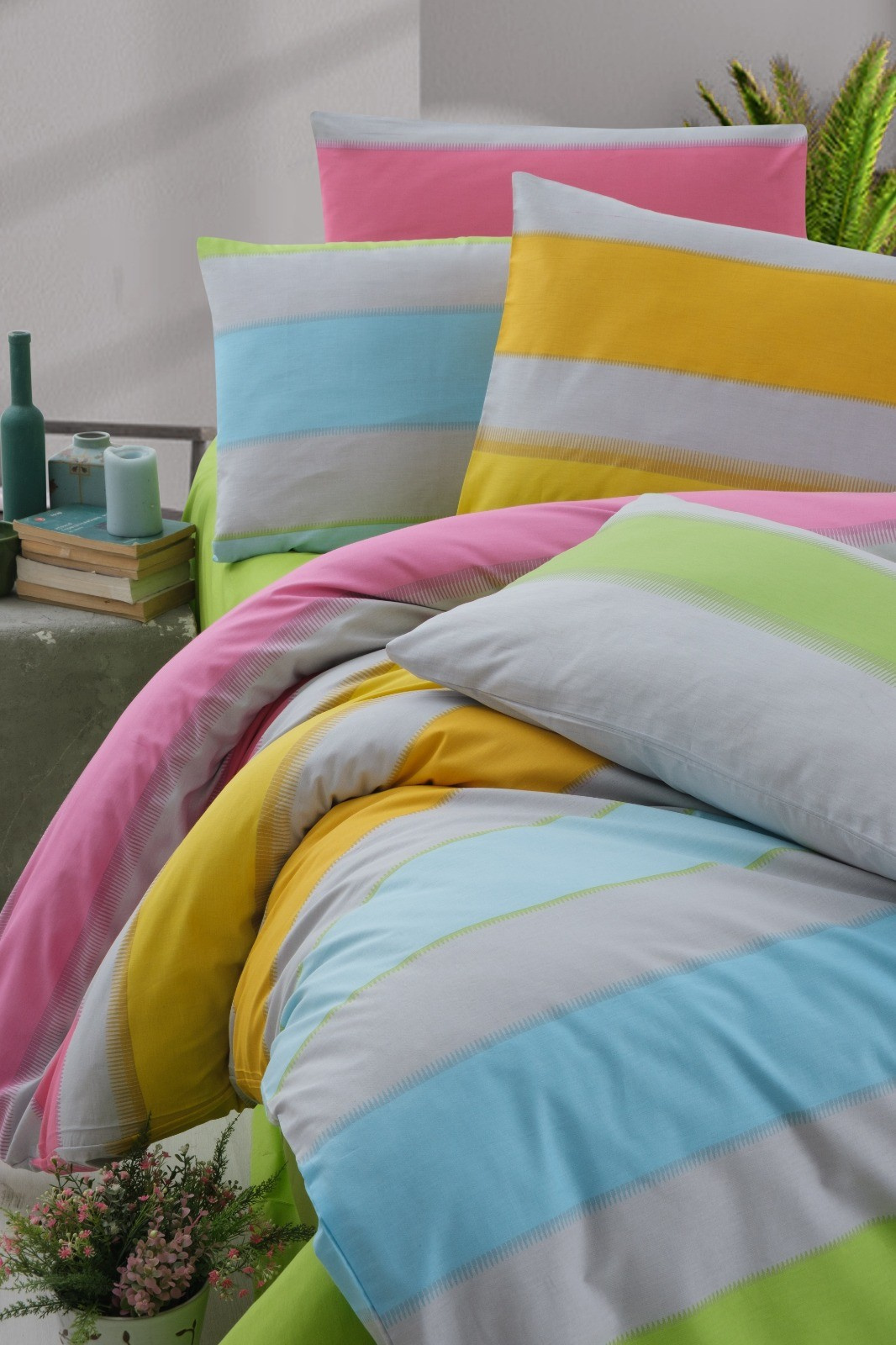 Povlečení můžete také kombinovat s jednobarevnými povlaky.
