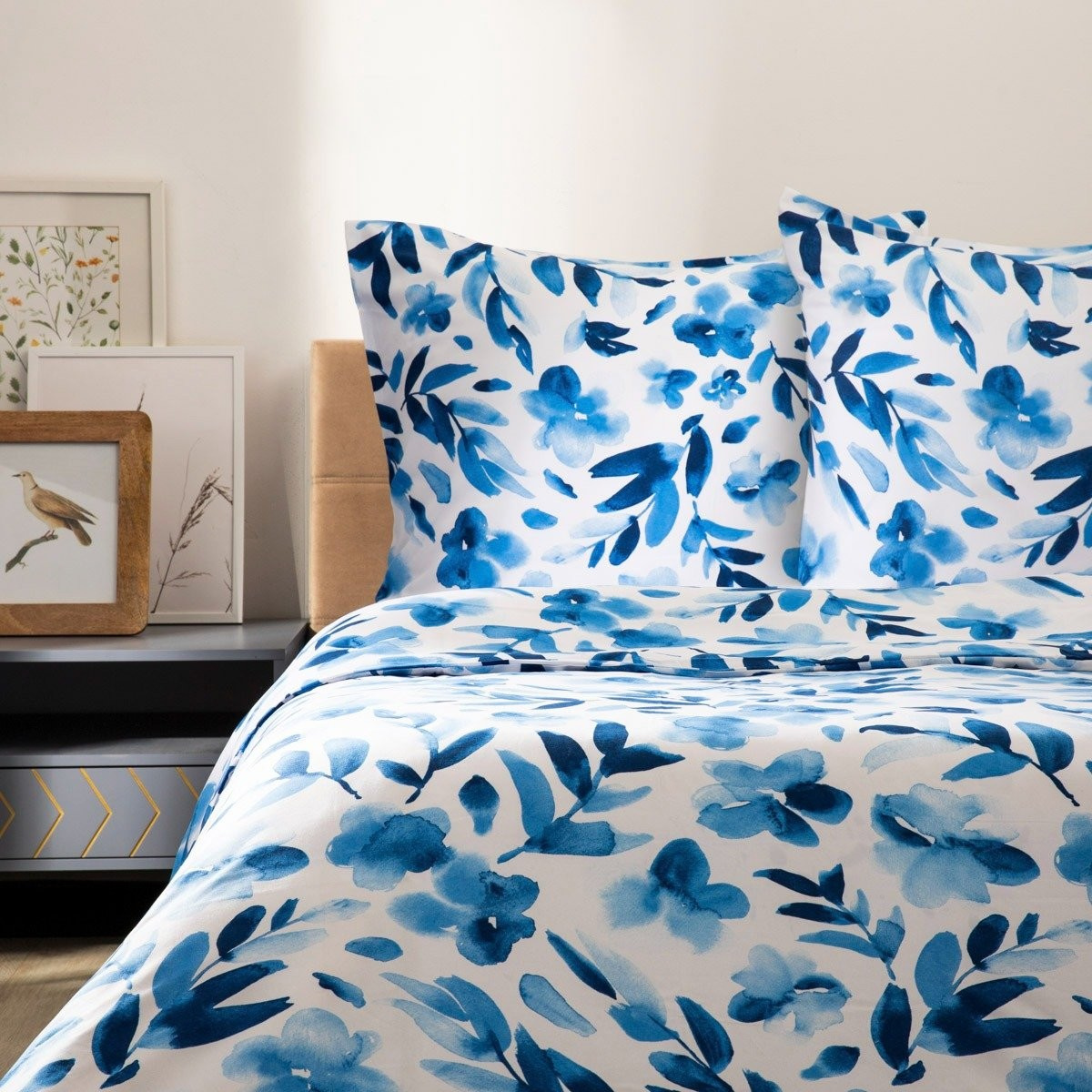 MADOG modré květinové mikrovláknové povlečení 220x200 + 2*70x80 cm Povlak na přikrývku 220x200cm povlaky na polštář 2*70x80cm