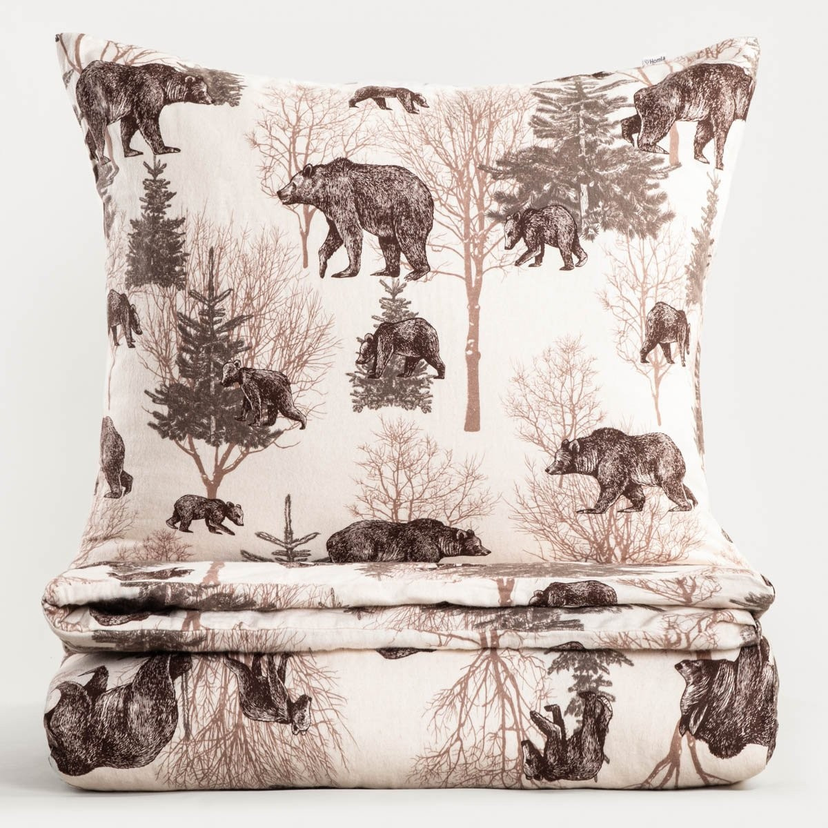 Vyrobeno z bavlněného flanelu, poskytuje pohodlný spánek a zahalení v chladnějších dnech. Vzor medvěda dodává ložnímu prádlu kouzlo a vašemu pokoji zvláštní nádech. Díky praktickému zapínání na zip je sada pohodlná na používání.Účel