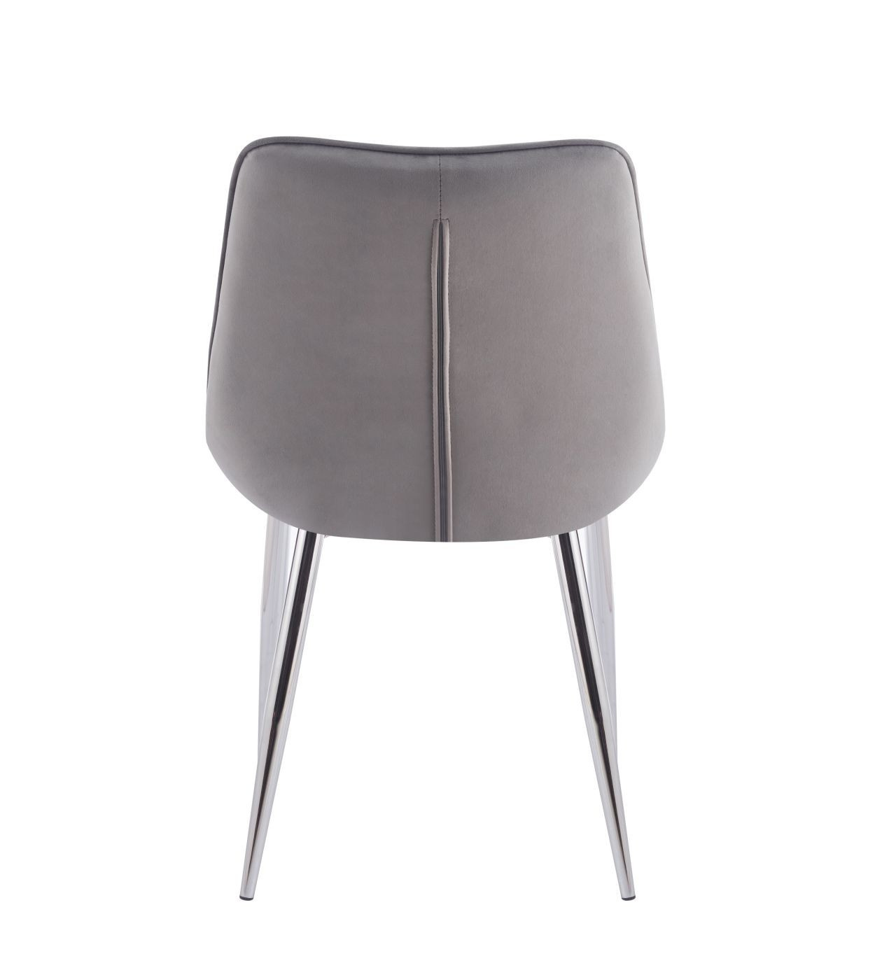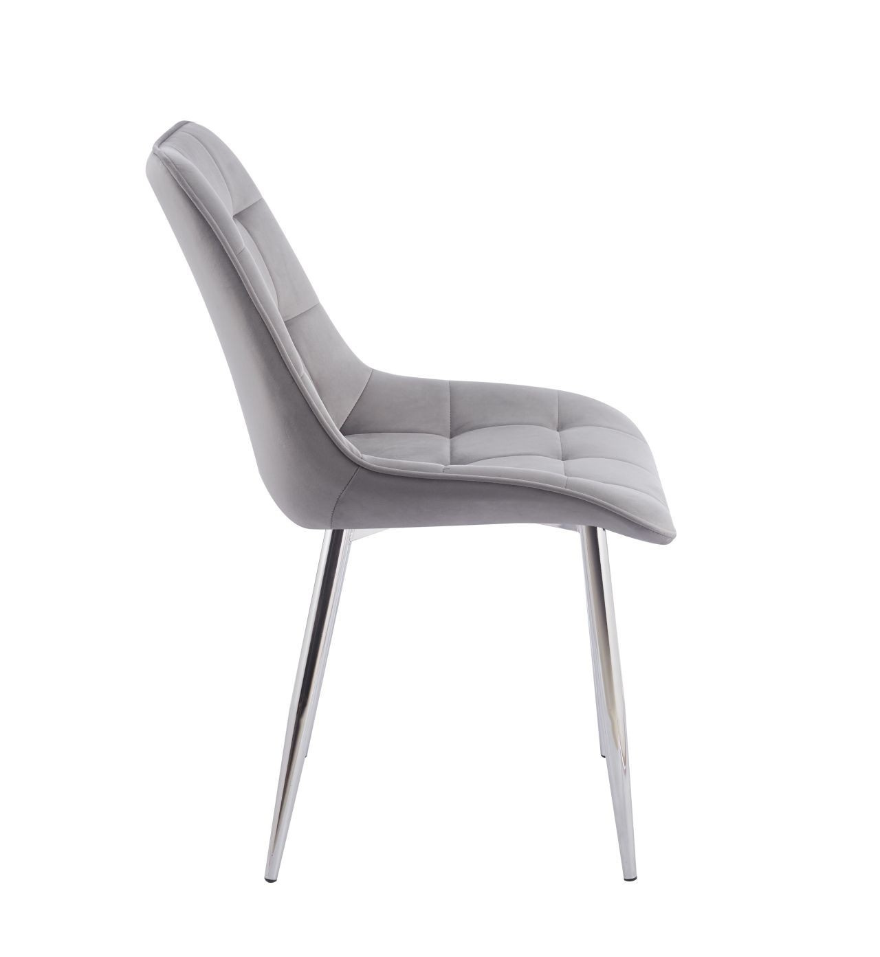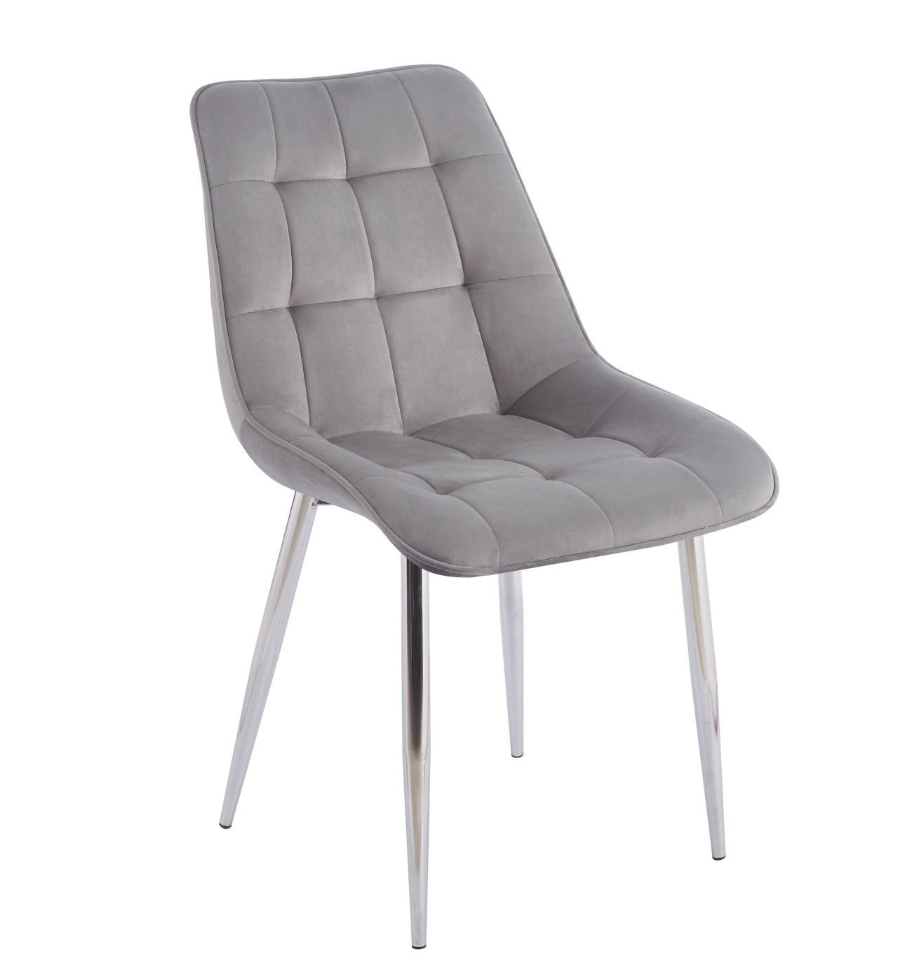 Rozměry: - šířka sedáku: 51 cm - výška sedáku: 49 cm - celková výška: 89 cm - hloubka sedáku: 44 cm Materiál - čalounění: samet Davis Riviera 91 - nohy: chrom Barva: - sedák: šedý - nohy: stříbrné