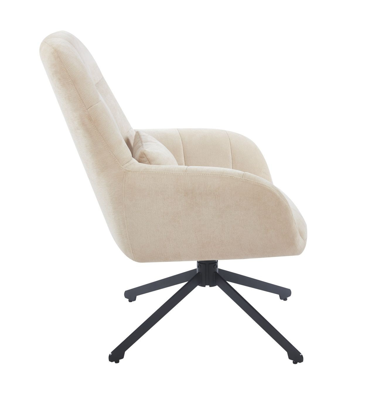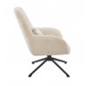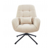 Křeslo má sedák otočný v rozsahu 360 stupňů Rozměry: - šířka sedáku: 48 cm - celková šířka: 71 cm - výška sedáku: 50 cm - celková výška: 95 cm - hloubka sedáku: 51 cm - polštář: 31x21 cm Materiál - čalounění: látka Holms - rám: kov lakovaný práškovou barvou Barva: - čalounění: béžová - rám: černá Ostatní: - otočný sedák - polštář