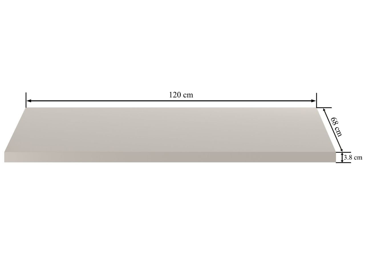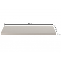 Rozměry: - délka: 120 cm - šířka: 68 cm - tloušťka: 3,8 cm Materiál: - laminovaná deska - hrany: zakončené ABS plastem Barva: - deska: kašmír