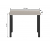 Rozměry: - délka: 100 cm - šířka: 60 cm - výška: 76 cm - tloušťka desky: 3,8 cm Materiál: - deska: laminovaná deska - hrany desky: zakončené ABS plastem - nohy: ocel lakovaná práškovou barvou Barva: - deska: kašmír - nohy: černá