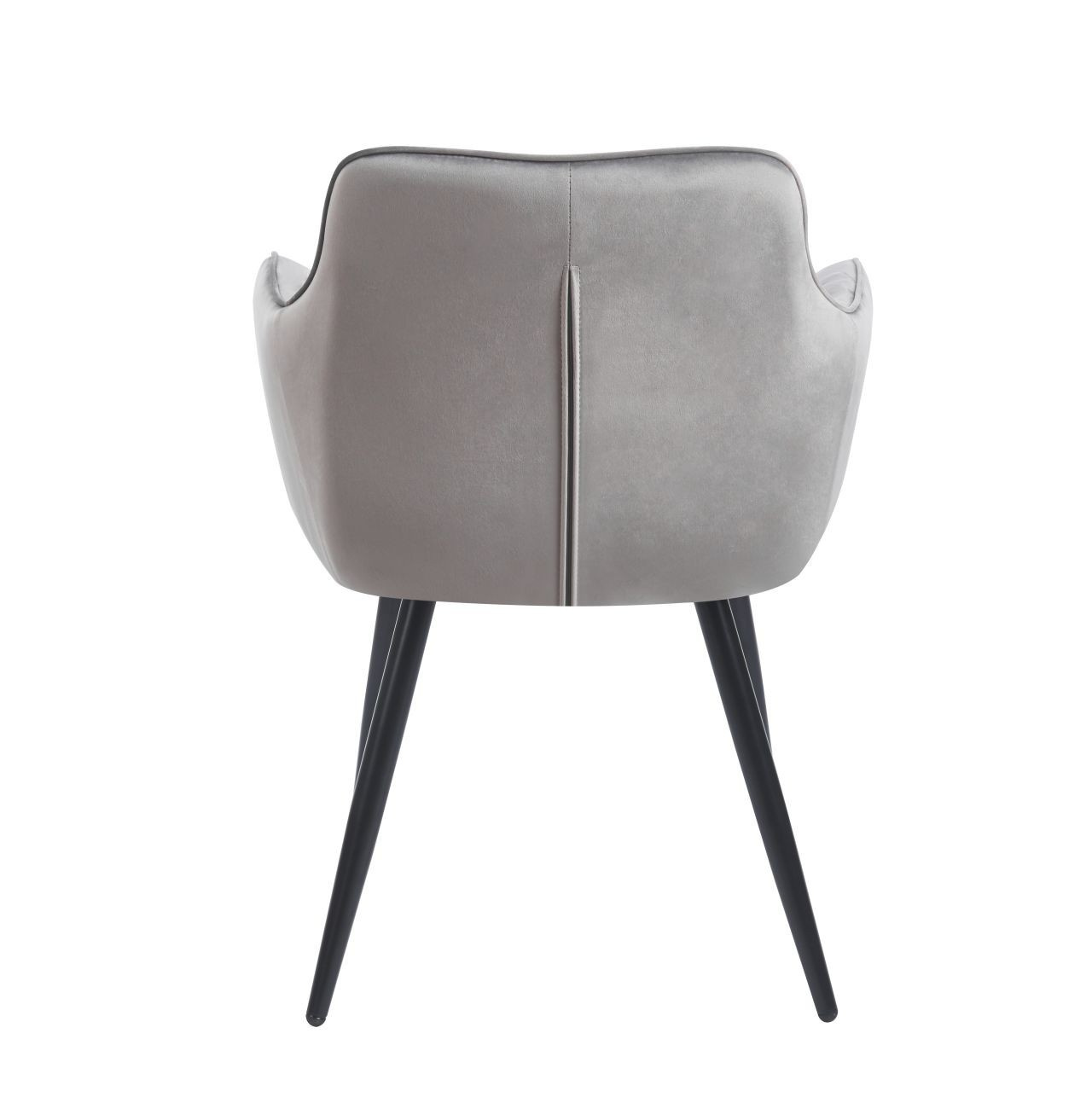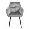 Rozměry: - šířka sedáku: 42 cm - celková šířka: 61 cm - výška sedáku: 49 cm - celková výška: 85 cm - hloubka sedáku: 46 cm Materiál - čalounění: samet - rám: kov lakovaný práškovou barvou Barva: - sedák: šedý - rám: černý