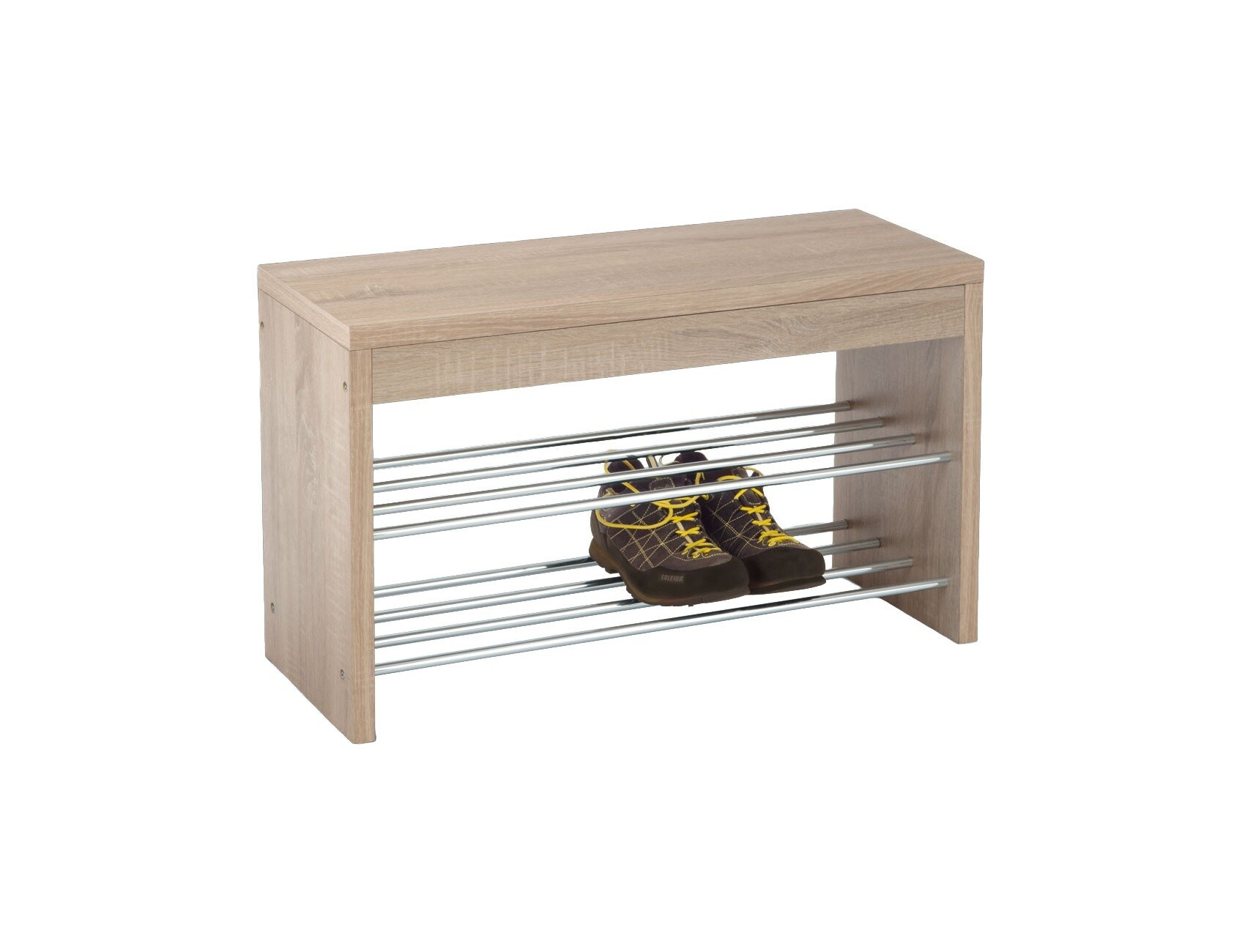 Botník s dvěma chromovanými policemi nabízí praktické a přehledné uspořádání obuvi v přirozeně laděn