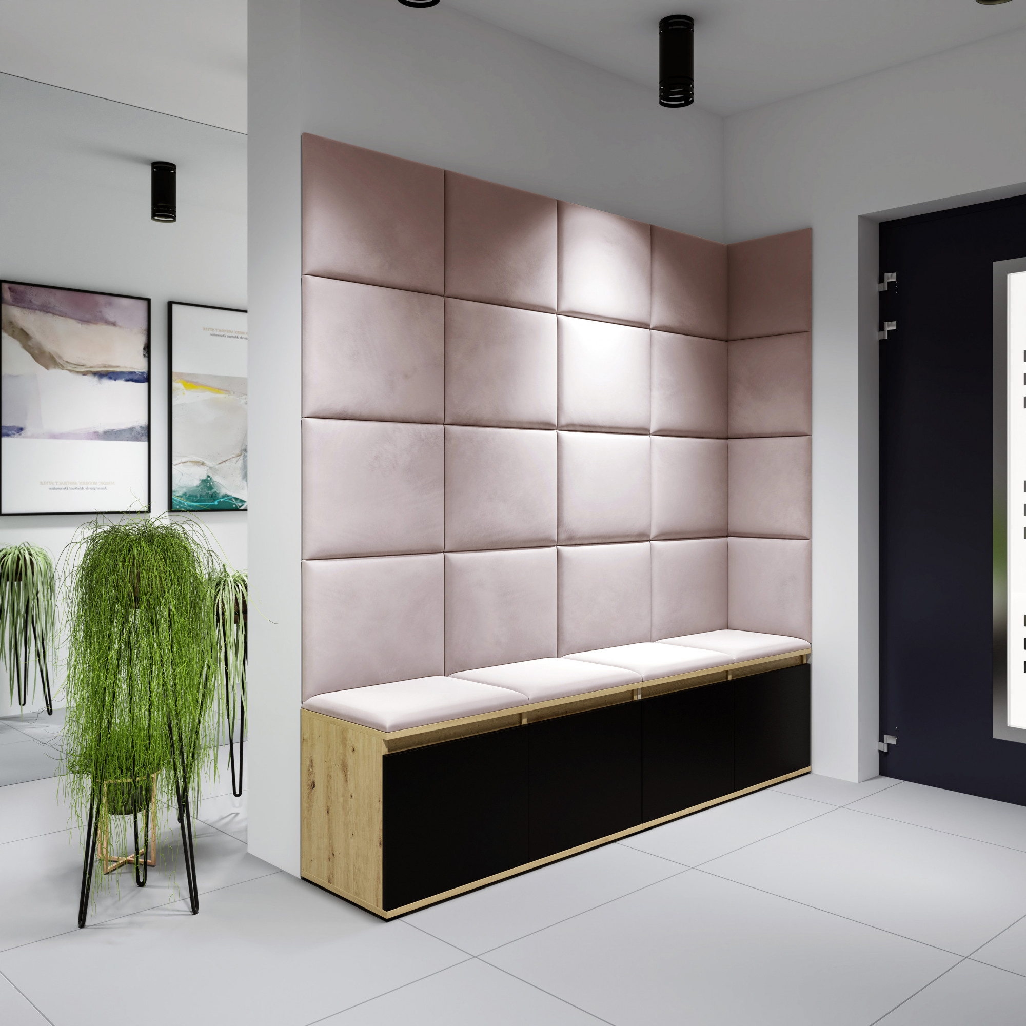 Předsíňová stěna EMI je vyrobena z lamina. Panely jsou počalouněny do potahové látky. Panely se uchycují ke zdi pomocí lepidla či pomocí oboustranných suchých zipů.