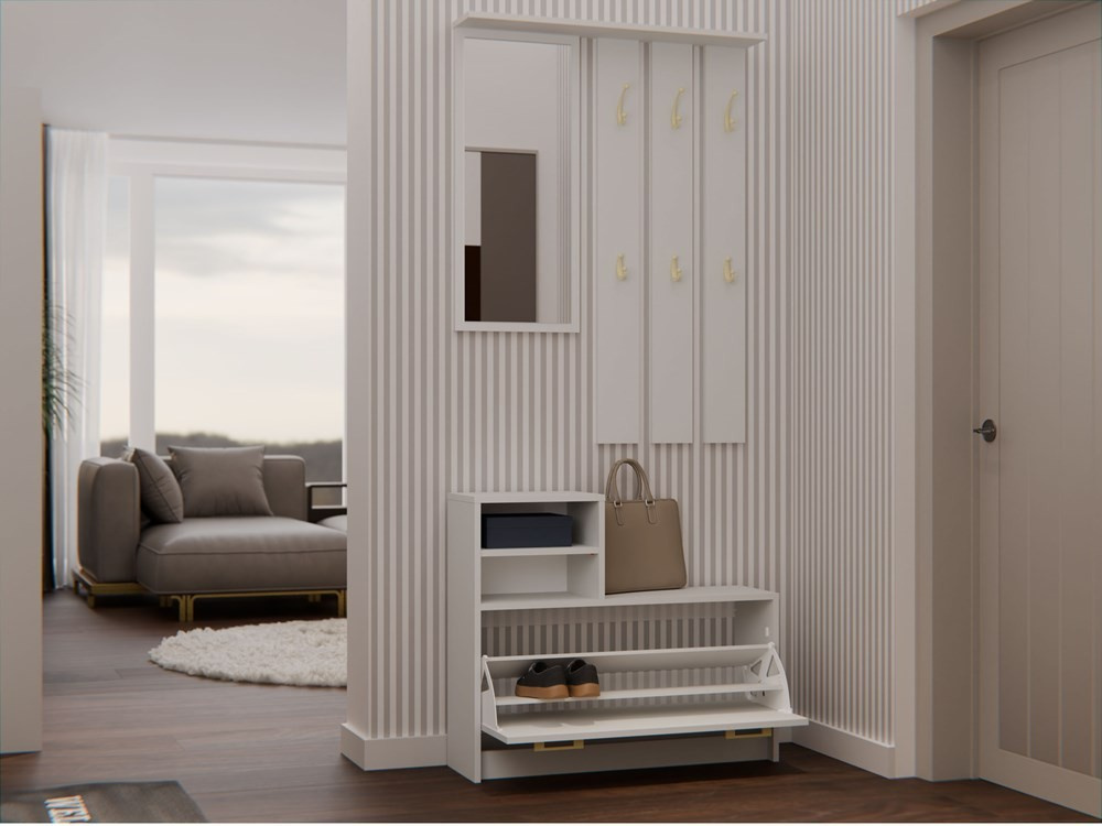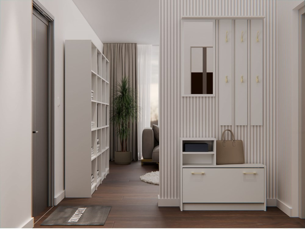 Praktická předsíňová stěna Jantar zútulní každý vstupní prostor vašeho bytu či domu. Je vybavená dostatečným množstvím háčků na oděv, zrcadlem, policemi i funkčním úložným prostorem na boty. Stěna je vyrobena ze snadno udržovatelného lamina, hrany jsou zakončené vysoce odolným ABS materiálem.