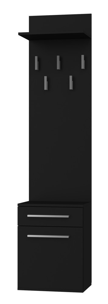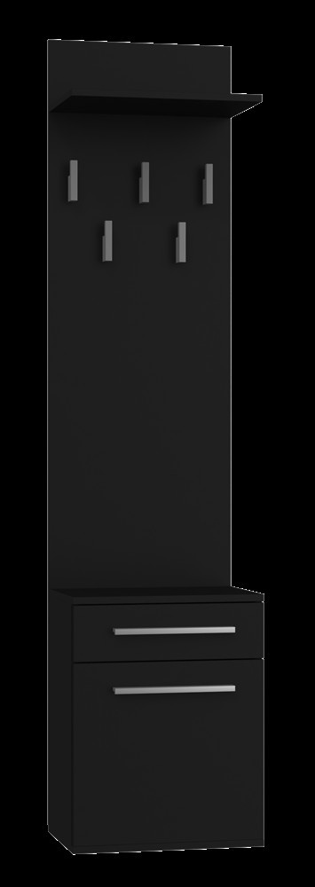 Předsíňová stěna Topaz v moderním stylu a trendy barvách splní očekávání všech, kteří ocení kombinaci jednoduchosti a elegance. Stěna obsahuje praktickou zásuvku a menší skříňku s možností montáže dvířek na levou nebo pravou stranu. Je vyrobena ze snadno udržovatelného lamina, hrany jsou zakončené vysoce odolným ABS materiálem.