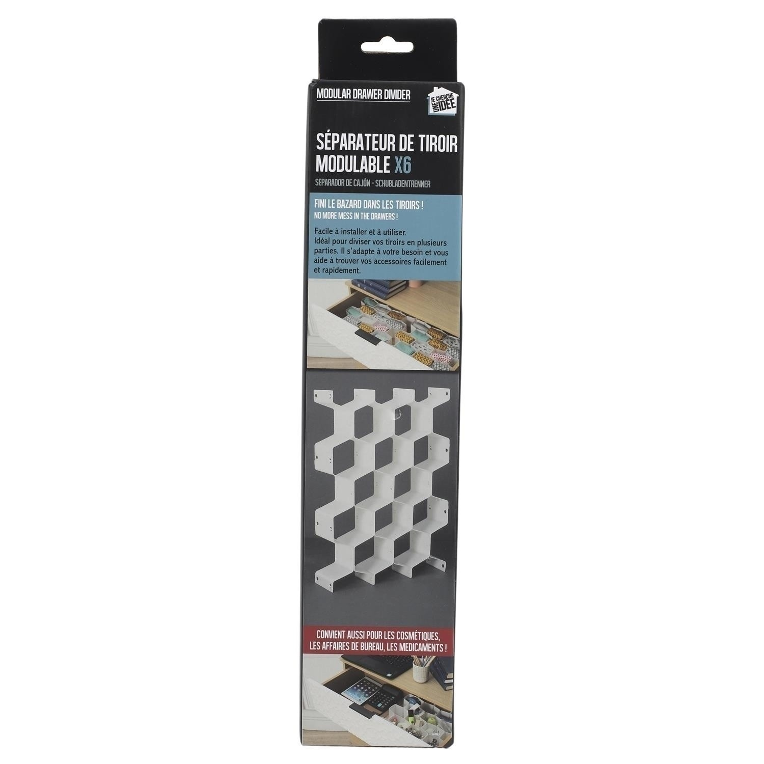 Tato modulární přepážka do zásuvek umožňuje organizaci prostoru podle vašich potřeb a pohodlí! Ideální do zásuvek v kanceláři, zásuvek s prádlem a dalších. Díky modulárnímu systému ji můžete přizpůsobit různým velikostem zásuvek a ukládat předměty uspořádaným a přístupným způsobem. Délka produktu (cm): 36,5 Výška produktu (cm): 7 Hloubka produktu (cm): 35 Hmotnost produktu (g): 308 Materiál: PP