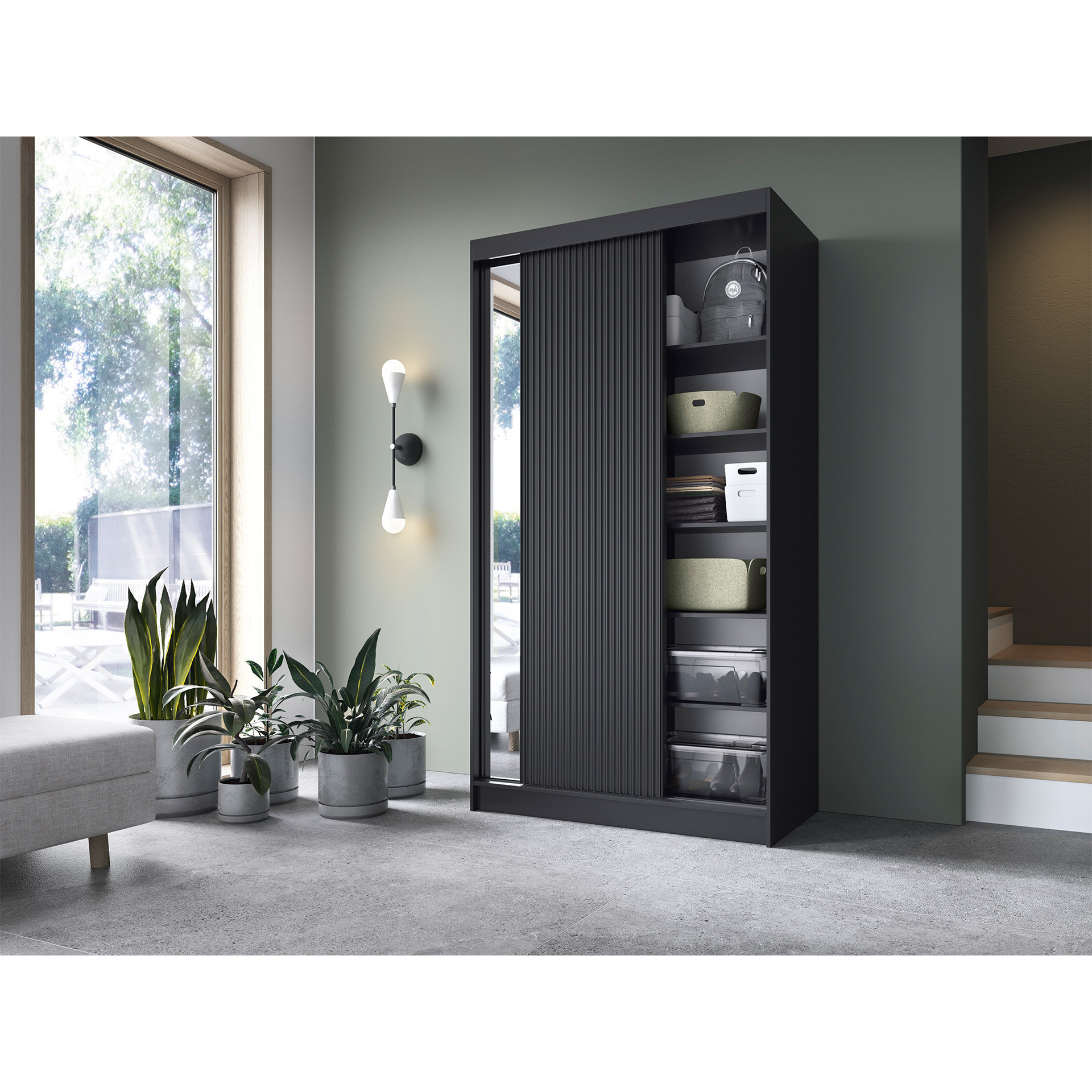 Posuvná skříň PRESCCO II, s zrcadlem Černá 220