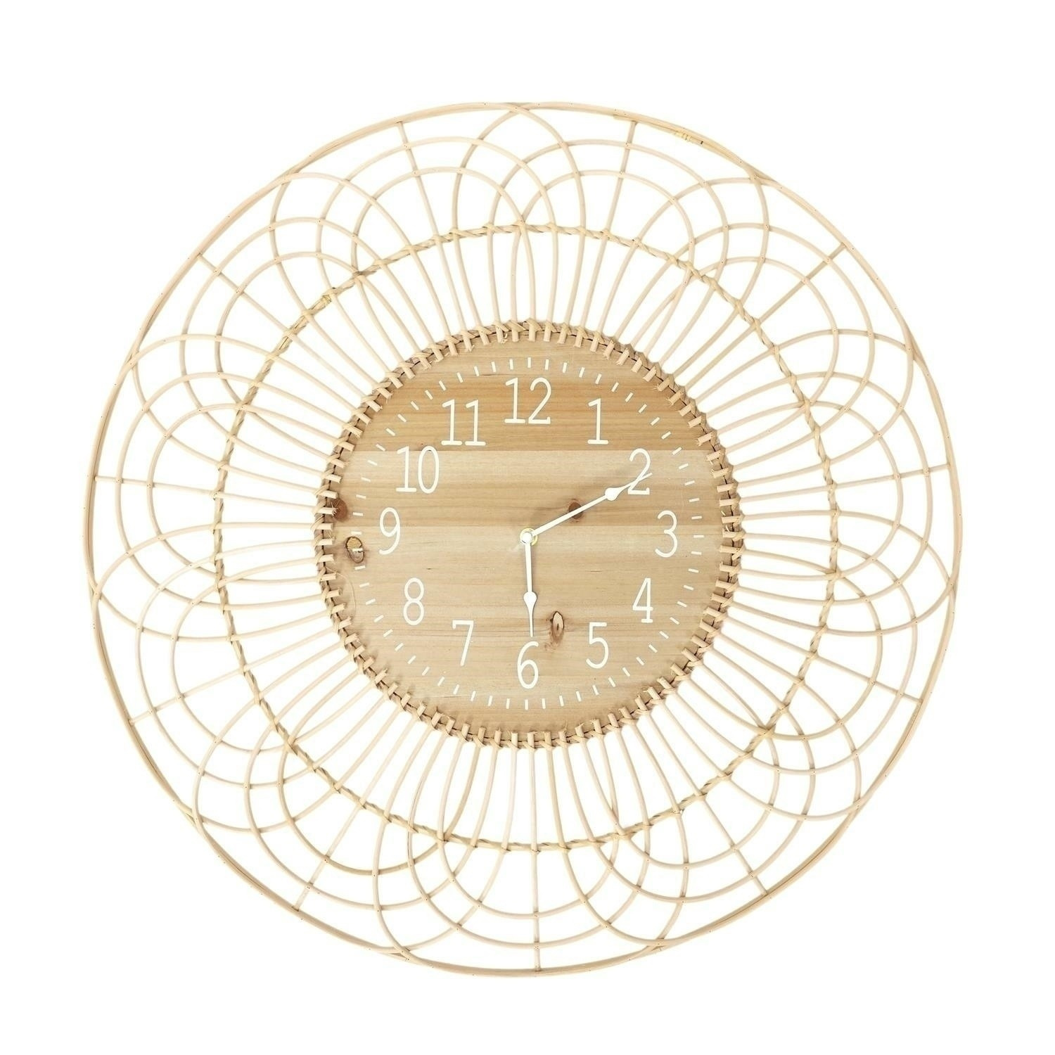 Neobyčejně ozdobné hodiny Boho Mauu jsou precizní, téměř krajkovou prací vyrobenou ze dřeva. Jemné hodiny složené z mnoha tenkých dřevěných tyčinek se hodí do interiéru plného idyly a kouzla přírodních materiálů. Jasný dřevěný ciferník hodin s kulatým tvarem je pozadím pro bílé ručičky a bílé číslice označující hodiny. Hodiny mají držák pro zavěšení na stěnu.