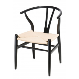 Přírodní černá proutěná židle inspirovaná Wishbone