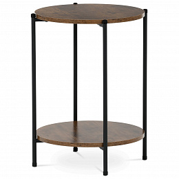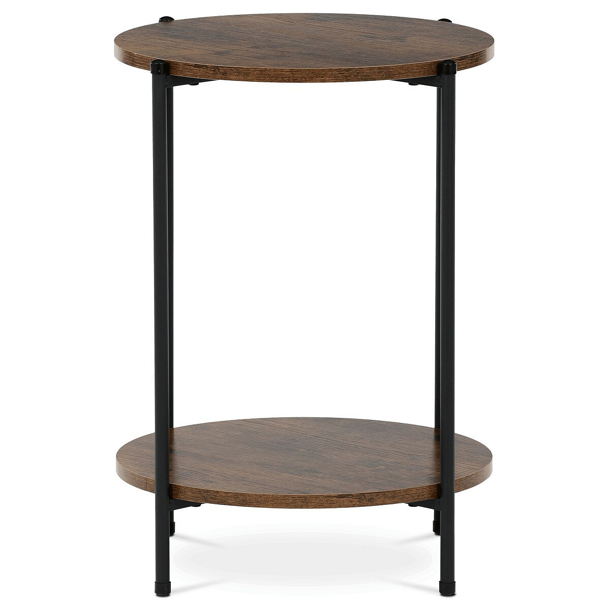 Moderní přístavný stolek značky Autronic spojuje minimalistický design a funkčnost. Kulaté desky v dekoru starého dřeva dodávají stolku přírodní eleganci, zatímco černě lakovaný kovový rám zajišťuje stabilitu a odolnost. Dvě praktické police nabízí dostatek prostoru pro uložení dekorací, knih nebo šálku kávy. Díky svému univerzálnímu vzhledu je tento stolek ideální volbou do obývacího pokoje, ložnice nebo kanceláře. Vneste do svého interiéru styl a praktičnost s tímto nadčasovým kouskem!