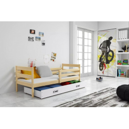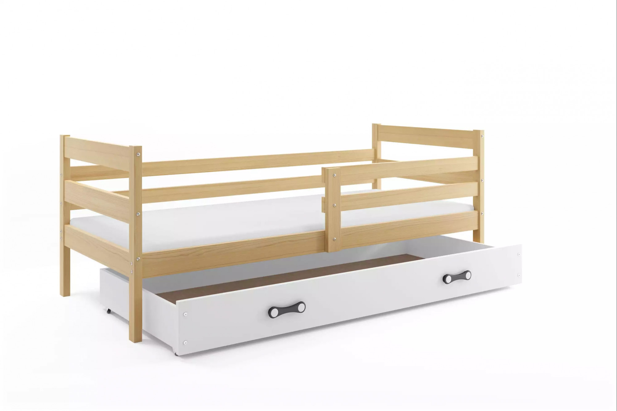 Dětská postel ERYK 90x200 cm se šuplíkem, s matrací, Přírodní/Bílá