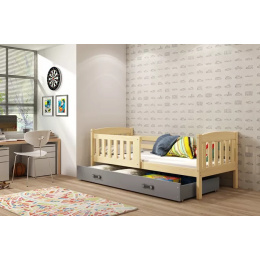 Dětská postel KUBUS 90x200 cm se šuplíkem, s matrací, Přírodní/Grafit