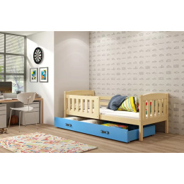 Dětská postel KUBUS 80x190 cm se šuplíkem, s matrací, Přírodní/Modrá