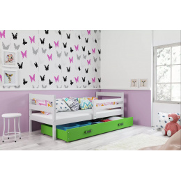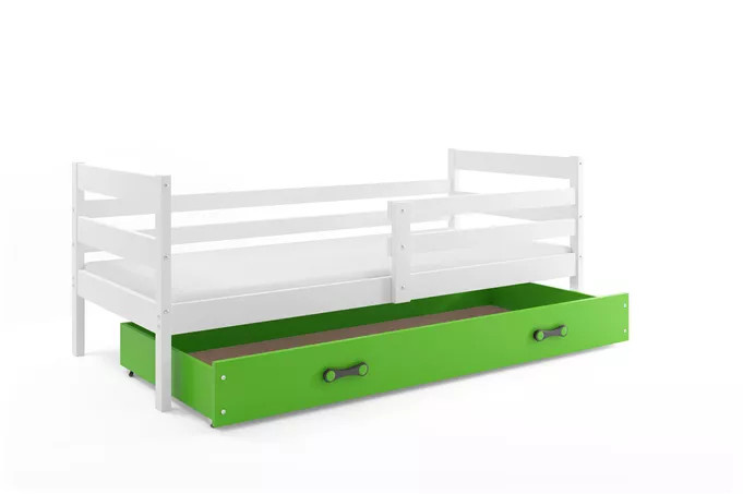 Dětská postel ERYK 90x200 cm se šuplíkem, bez matrace, Bílá/Zelená