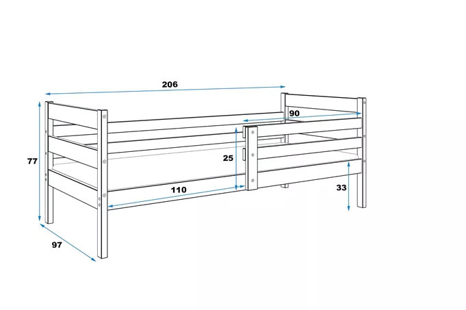 - Rám postele je vyrobený z borovicového dřeva a natřený vodním lakem