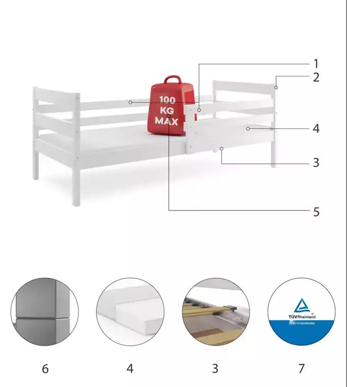 Dětská postel ERYK 90x200 cm, s matrací, Bílá