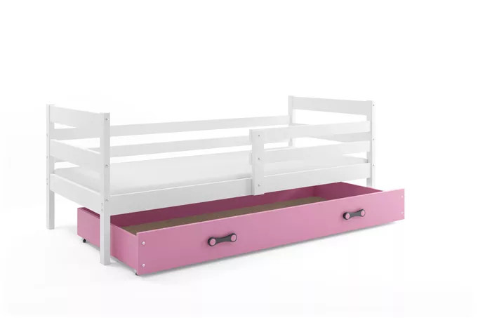 Dětská postel ERYK 80x190 cm se šuplíkem, bez matrace, Bílá/Růžová