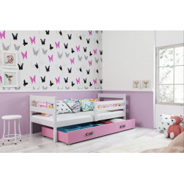 Dětská postel ERYK 90x200 cm se šuplíkem, bez matrace, Bílá/Růžová